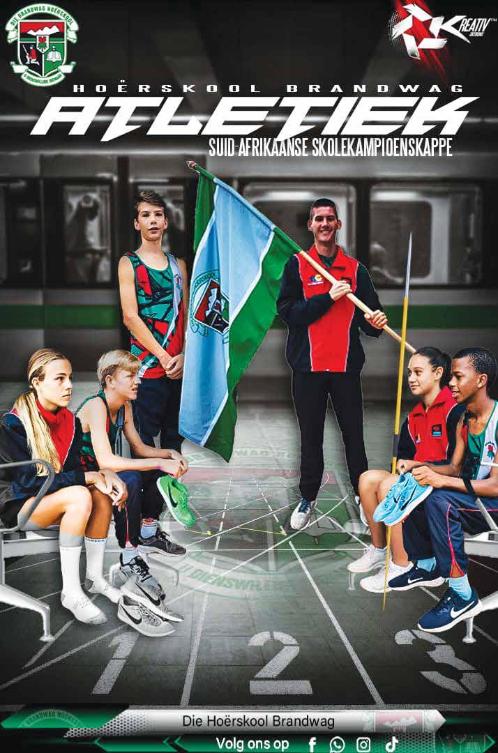 Ses atlete van Brandwag is gekies vir die SA-skolekampioenskappe: Kara Fourie, Janco Landman, Liam Vosloo, Wiehan Maree, Chanté Mulder en Christiano Brown. 119 van Brandwag se atlete het die naweek van 10 - 11 Feb aan die distriksbyeenkoms deelgeneem. Ons verwerf 50 goue medaljes, 31 silwer medaljes en 23 brons medaljes!