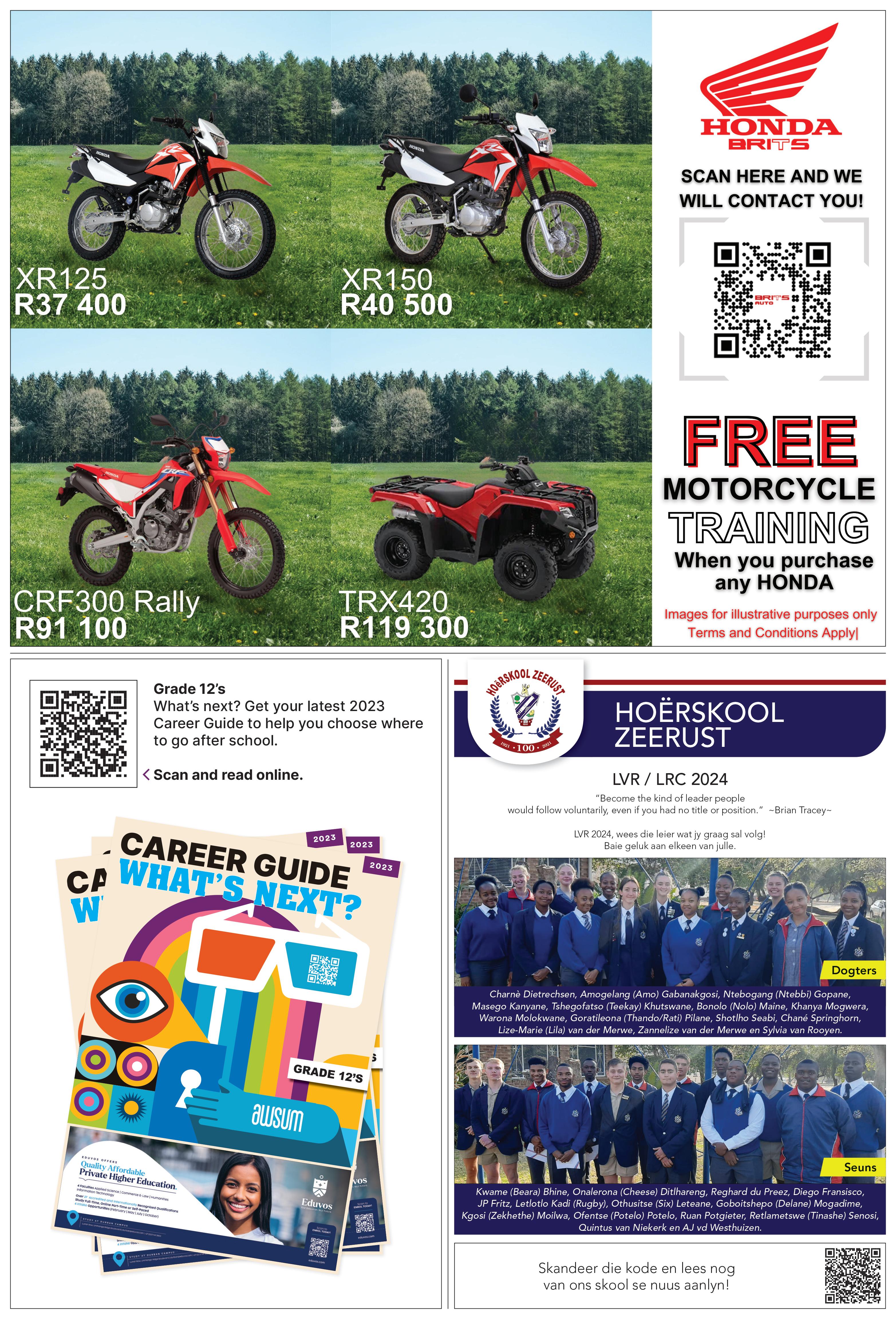 • Ons jaarlikse beroepsgids is `n spesiale uitgawe waar ons saam met na-skoolse instansies saamwerk om studierigtings met matrikulante te deel.