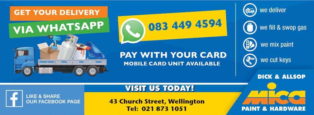 Read the latest school news on www.awsumnews.co.za AWSUM News | Celebrating school achievements in South Africa FREE Congratulations to the Matric Class of 2022! TOP ACHIEVERS 2022 INSIDE! TOP ACHIEVERS FROM SCHOOLS IN THE WESTERN CAPE Graad 7’s! Waarheen gaan jy volgende jaar? Hoërskole deel hulle Ope Dae datums in die uitgawe! info@thelittleartshop.co.za | www.thelittleartshop.co.za 0 8 3 3 2 1 6 4 0 7 021 852 3777 Subject to Please presen Valid for the entire year of 2023! labour with this ------------------------ service@ironmenauto.com 87 Victoria st. SW (Caltex back entrance) Eenheid D06A, 3de Vloer, La Concorde, Hoofstraat 57, Paarl 021 872 1581 info@bolandtravel net www bolandtravel co za ... u betroubare reisgenoot sedert 1984 gereed om u behulpsaam te wees met al u reisbehoeftes 15 Voortrek Street, Swellendam | tel: 028 514 1103 | sales@hoekstoyota.co.za | www.hoekstoyota.co.za Paarl PAARL 021 202 0620 WWW.CHERYPAARL.CO.ZA TIGGO PRO FAMILY NOW AVAILABLE AT CHERY PAARL