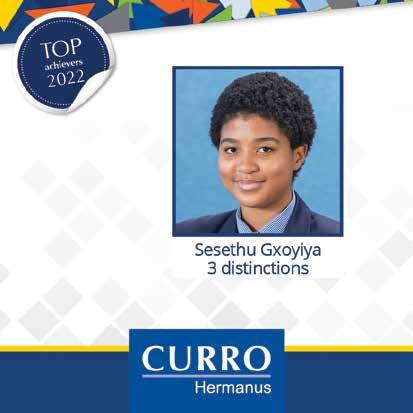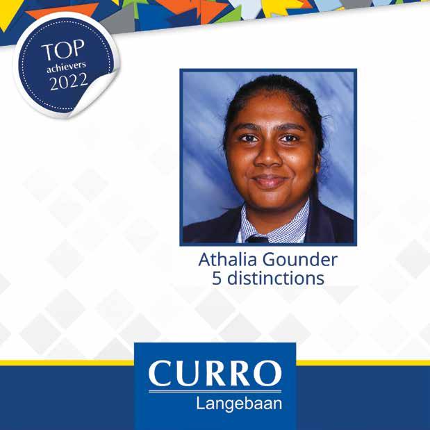 For the best range of top quality brands and tiles, come to your local On Tap store! On Tap - The Home of Beautiful Bathrooms and Kitchens. A bathroom the whole family will LOVE! For more information visit our website and Book Online! 1 Voortrekker Str, Ceres, 6835 • Tel: 079 245 0354 • 078 063 5134 Email: info@ceresadventures.co.za • Gps: S 33’ 22.530 E 19’ 17.881 www.ceresadventures.co.za Ceres Zipline Tour consists of 8 slides varying from 100m-290m totalling 1,4km. We are open 365 days a year! Ceres Zipslide Adventures Africa’s Best Zipline Tour! PAARL GIRLS’ HIGH SCHOOL Zanke Nell 94% - 8A’s Ané Geldenhuys 86.86% - 6A’s Catharine la Grange 81.86% - 4A’s Emma Vermeulen 91.71% - 7A’s 14. Adri Carstens 85% - 6A’s Aninka Ferreira 81.43% - 4A’s Jeanne le Roux 91.29% - 8A’s Menanteau Bester 84.71% - 6A’s Liza le Roux 81% - 4A’s Isabella Retief 89% - 7A’s Anja Marais 83.43% - 5A’s Anja van Heerden 80.71% - 4A’s Abigail le Roux 88.29% - 7A’s Uné Jacobs 82.71% - 5A’s Karla Strangfeld 80.29% - 4A’s Jacqueline Swart 92.57% - 7A’s Jana Stofberg 85.57% - 6A’s Lize Verreynne 81.43% - 5A’s Maré le Roux 91.71% - 7A’s Ghita Nickall 84.71% - 6A’s Zoë Botha 81.29% - 5A’s Emily Catto 90.14% - 7A’s Mila Malan 83.71% - 5A’s Emma Eksteen 81% - 5A’s Anaïs van Wyk 88.86% - 8A’s Caitlynn Steenkamp 83.14% - 6A’s Elsje Esterhuyse 80.71% - 5A’s Isabella Agostini 87.71% - 6A’s Jessica Greyvensteyn 82.57% - 5A’s Rebecca Honeyborne 80% - 5A’s Daniella du Toit 87.43% - 7A’s Jana Lützeler 81.86% - 4A’s Baie geluk aan al ons Matrieks van 2022 met julle uitstekende uitslae. Ons is trots op elkeen van julle.