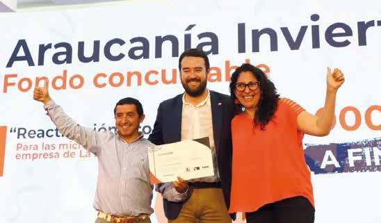 raucanía Invierte”, así se denomina la iniciativa liderada por el Gobierno Regional y ejecutados por la Corporación Desarrolla Araucanía que entregó recursos por hasta $50 millones a 180 empresarios regionales, que fueron beneficiadas por los fondos concursables por un total de $9 mil millones con el objetivo de reactivar la economía regional a través de este instrumento de apoyo, en ámbitos como materias primas, equipamiento, mobiliario, maquinarias o herramientas y mejora de infraestructura de las pymes de La Araucanía.