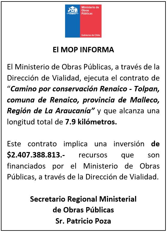 la provincia de Cautín son Lautaro, Vilcún y Cunco; mientras que en Malleco las comunas con mayores montos son Purén, Lumaco y Renaico.