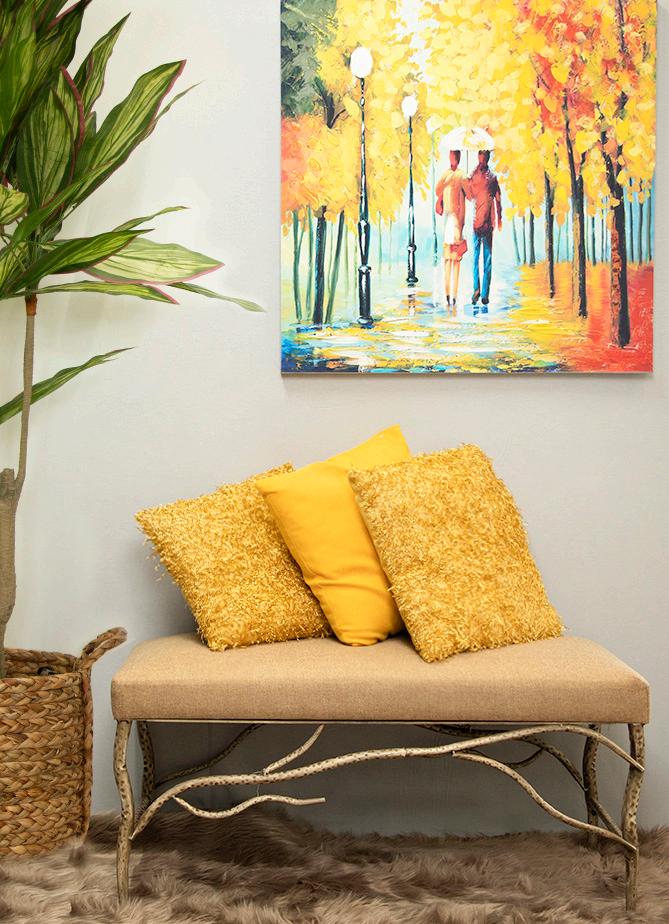Cuadro decorativo ¢48.975 Almohadones: A. Almohadón liso ¢9.975 B. Almohadón con textura ¢9.225 Butaca ¢179.175 8747-3145 B. A.