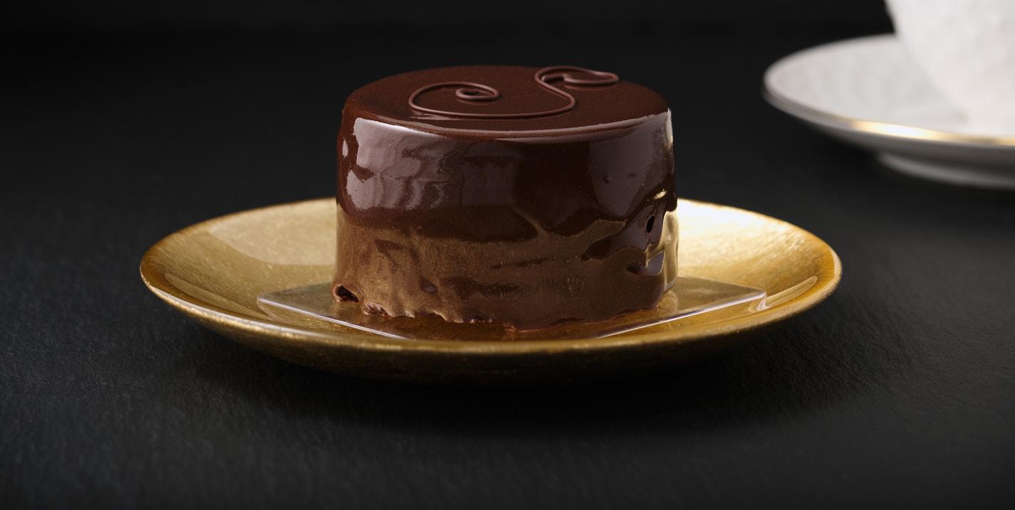 Tomar una porción de mini torta, untar un poco de ganache al rededor y cubrir con chocolate rallado, disponer el ganache en una manga pastelera, realizar una corona en la parte superior de la torta y en la cavidad agregar la salsa de caramelo.