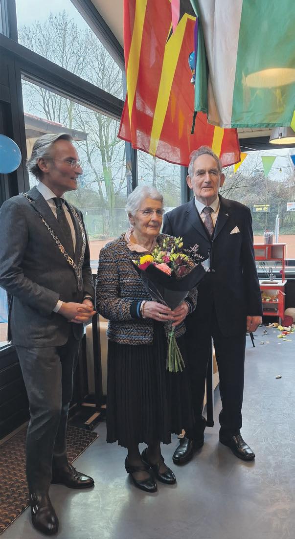 Leo (88) en Wijntje (86) zijn op hun trouwdag verrast door hun kinderen en kleinkinderen in de kantine van tennisverenging Dash’35. Burgemeester Nanning Mol kwam daar ook langs. De burgemeester complimenteerde het echtpaar met hun geweldige lichamelijke conditie, spontaniteit, vrolijkheid en hun gastvrijheid. Ook roemde