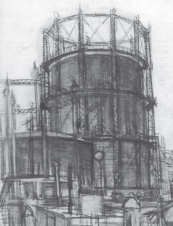 De gasfabriek aan de Bleijenhoek, het enige gebouw dat er nog staat is het Veerhuis.