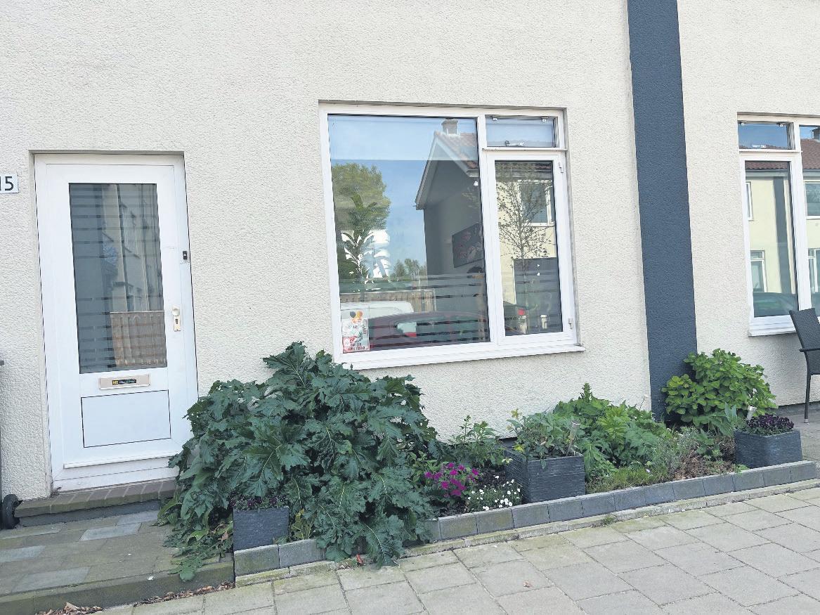 << Toen ik hier gefotografeerd had ging de voordeur open. ”Waarom maakt u een foto van mijn tuin? ,” vroeg mevrouw. “Omdat die zo mooi vol met planten is,” antwoordde ik, “het is voor in de krant.” Ze reageerde opgetogen: ”oh, dan ben ik vereerd.”