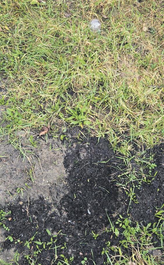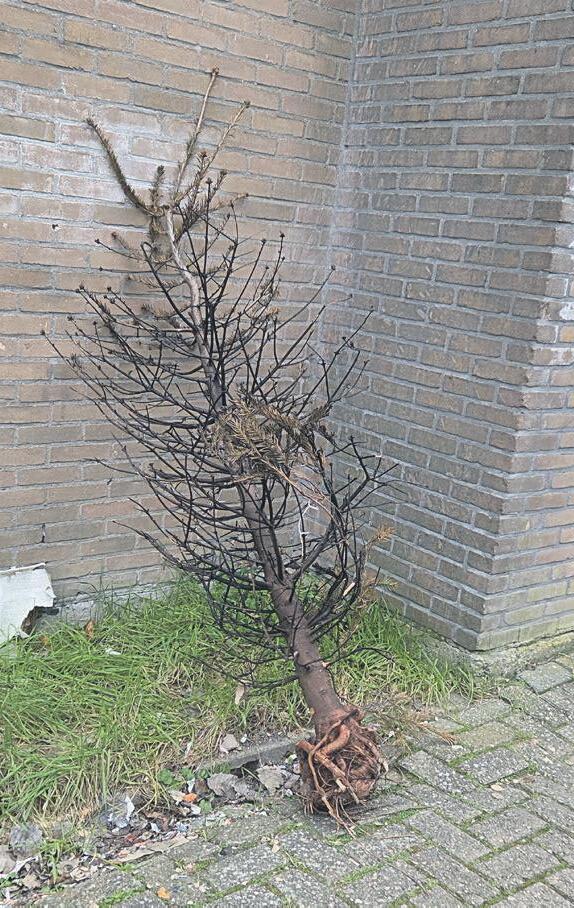 de kerstversiering lag nog rond het gat. Later vonden buurtbewoners verderop in de wijk een verbrand boompje dat verbazend veel leek op de gestolen boom uit de tuin van ‘t Staartje.
