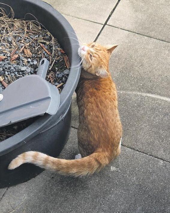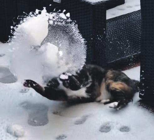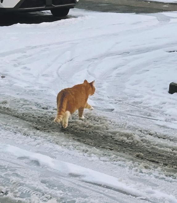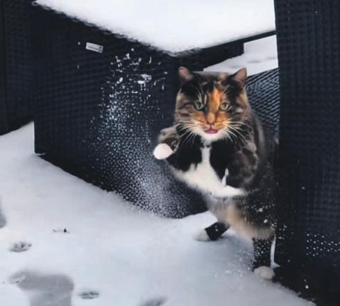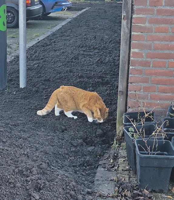 nat thuis, bij voorkeur als onze mensen al in bed lagen, want dan kon hij lekker bij hen kruipen om op te warmen. Al geloof ik dat zij dat een minder goed idee vonden. Hij had een nieuwe vriendin, ene Diva, die de sneeuw ook fantastisch vond. Ik ben wel heel benieuwd of zij zich ook bij haar personeel gaat opwarmen en ik denk dat ik wel kan raden hoe die dat vindt... Volgens Poema werd ik erg gemist in de buurt. Vooral mijn vriend Luigi hing steeds in onze tuin en bij de voordeur rond in de hoop dat ik me zou laten zien. Toen ik weer een beetje kon trappen lopen, ben ik wel af en toe de tuin in gegaan, en dan zat Luigi al op de schutting of op het dak van het schuurtje te wachten.