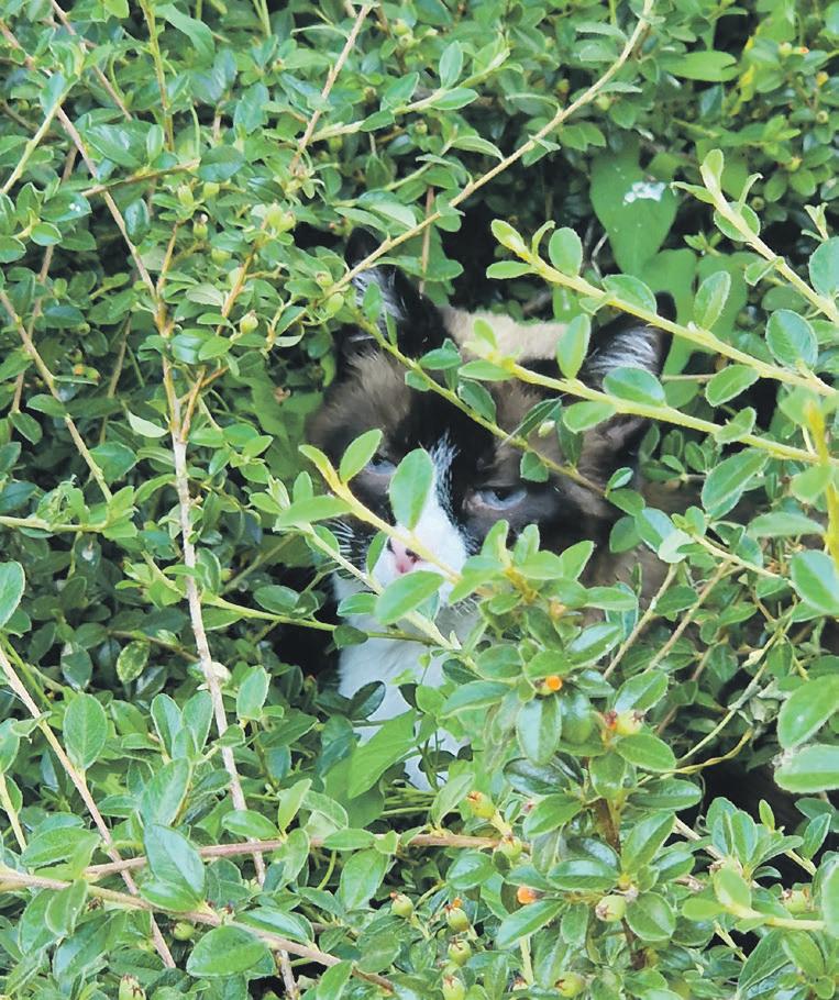 de tuin. Behalve als ik snel door de voordeur mee naar buiten kan glippen, dus. Ik heb de bosjes langs de parkeerhavens uitgebreid verkend, en heb een hele tijd verstoppertje gespeeld met mijn mensen. Ze probeerden zelfs om zich ook een weg door de bosjes te banen, en gingen dan helemaal de verkeerde richting op. Wat zijn die tweebeners toch stom, zeg.