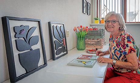 de gelukkigen is die het talent heeft om wat haar ogen zien, te maken met haar handen. Ze weet dat vervolgens om te zetten naar het creëren van kunstige objecten, ter verfraaiing van een ruimte in huis, kantoor of winkel etc. Het is geen massawerk, maar puur vakvrouwschap waarmee het ambacht in ere wordt gehouden.