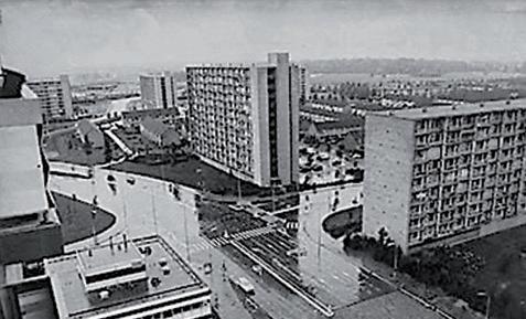 Een kleurrijker beeld, ook omdat het flatgebouw aan de Keplerweg nog is ‘ingepakt’. Op de rechterfoto zijn o.a. het Albert Schweitzerziekenhuis, de Sportboulevard en de woontorens aan de Overkampweg te zien. Daar was op die locaties zo’n 55 jaar geleden nog geen sprake van.