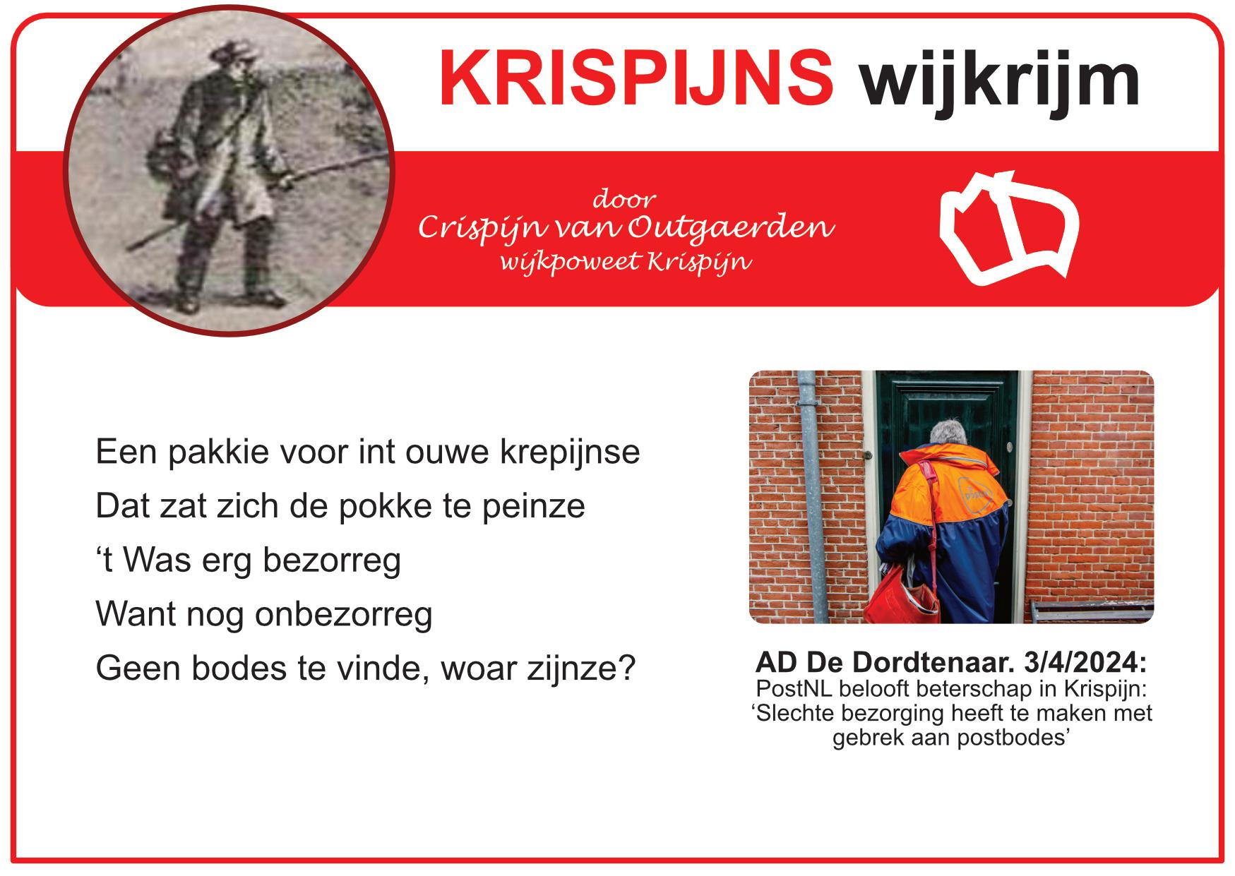 Elco wil graag dat de wijk het karakter van de oorspronkelijke woningbouw behoudt. Er staan veel mooie huizen uit een periode dat er met zorg en aandacht gebouwd werd. Zeg maar de dertiger-jaren-bouw met mooi metselwerk en mooi glas-in-lood. Aan het slot van ons gesprek komt ook het thema verbinden, omzien naar elkaar weer terug. Elco vindt dat de vele kleinschalige wijkactiviteiten daarin niet gemist mogen worden. Deze verdienen blijvende steun. Voor een leefbaar Krispijn!