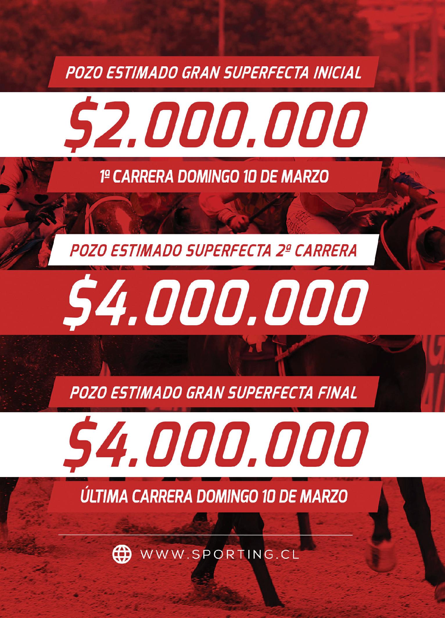 Acertar el 1er, 2do, 3er y 4to lugar de una carrera, en orden exacto, con un mínimo de cuatro ejemplares seleccionados. Valor mínimo $ 100.