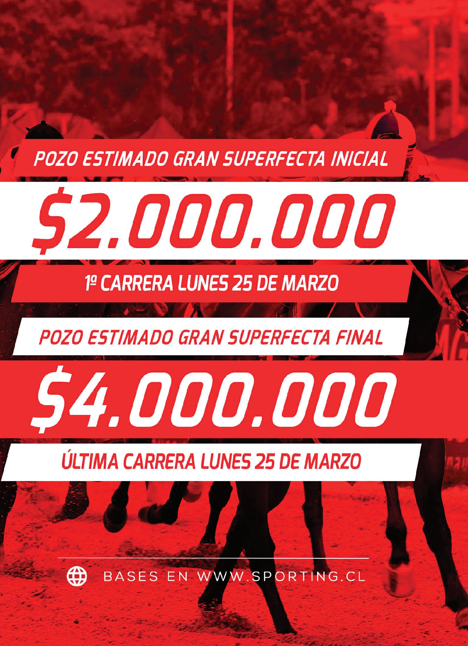 Acertar el 1er, 2do, 3er y 4to lugar de una carrera, en orden exacto, con un mínimo de cuatro ejemplares seleccionados. Valor mínimo $ 100.