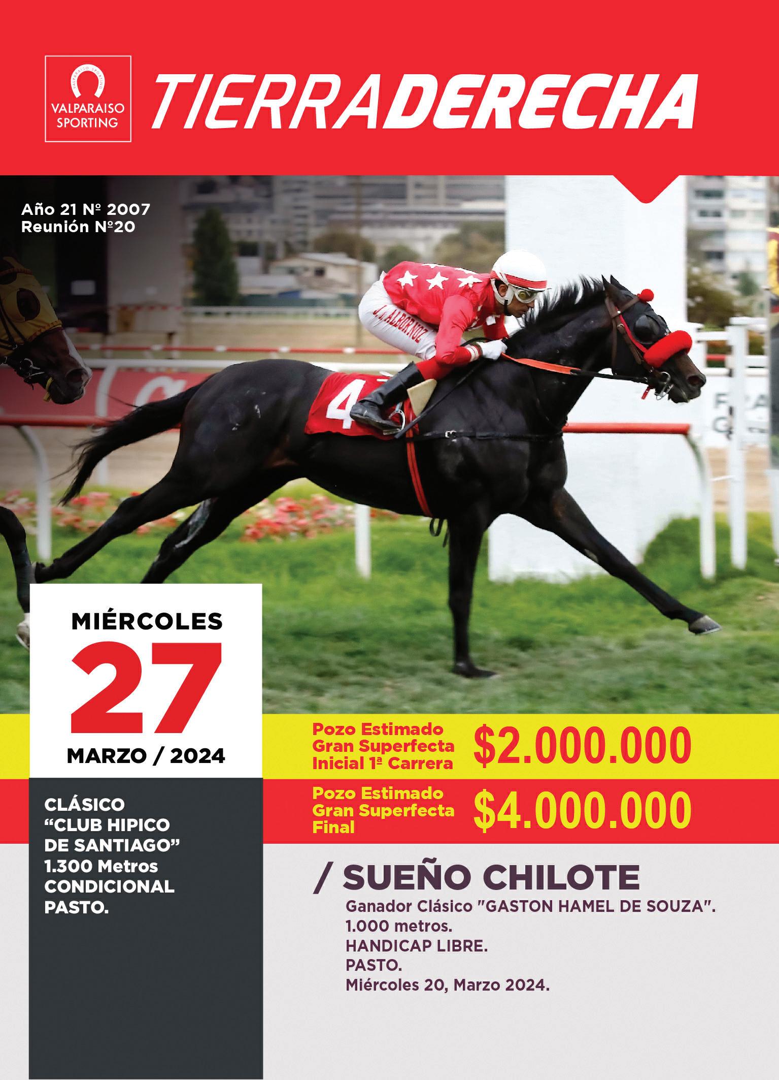 Director de Turno DonItalo Traverso Natoli DIRECTORIO . . . . . . . . . . . . . . . . .3 TABLADE COMBINACIONES . . . .4 MODELO EXPLICATIVO . . . . . . . . .5 PRONOSTICOS . . . . . . . . . . . . . . . .6 EJEMPLARES INSCRITOS . . . . . .8 - 9 PREPARADORES YJINETES . . . .10 - 11 PROXIMAINSCRIPCION . . . . . . . . .18 ESTADÍSTICAGENERAL . . . . . . . .29 TABLADE RECORDS . . . . . . . . . . .42 ESTADÍSTICADE RENDIMIENTO . .55 ESTADÍSTICADE STUD . . . . . . . .67 RESULTADOS . . . . . . . . . . . . . . . .82 - 84 TRABAJOS CONTROLADOS . . . . . . .85 - 86