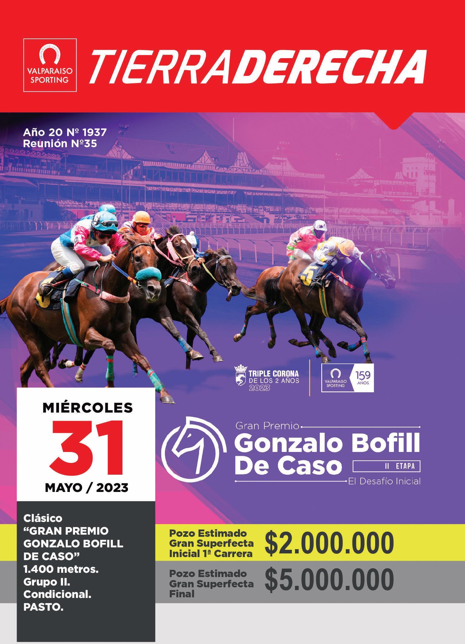 3 Miércoles 3 31 d de M Mayo d de 2 2023 Representante Legal Don Mauricio Maurel Tassara Director de Turno Don Gonzalo Bofill Velarde DIRECTORIO . . . . . . . . . . . . . . . . .3 TABLADE COMBINACIONES . . . .4 MODELO EXPLICATIVO . . . . . . . . .5 PRONOSTICOS . . . . . . . . . . . . . . . .6 EJEMPLARES INSCRITOS . . . . . .8 - 9 PREPARADORES YJINETES . . . .10 - 11 PROXIMAINSCRIPCION . . . . . . . . .15 ESTADÍSTICAGENERAL . . . . . . . .29 TABLADE RECORDS . . . . . . . . . . .37 ESTADÍSTICADE RENDIMIENTO . .41 ESTADÍSTICADE STUD . . . . . . . .51 RESULTADOS . . . . . . . . . . . . . . . .84 - 87 TRABAJOS CONTROLADOS . . . . . . .87 - 89