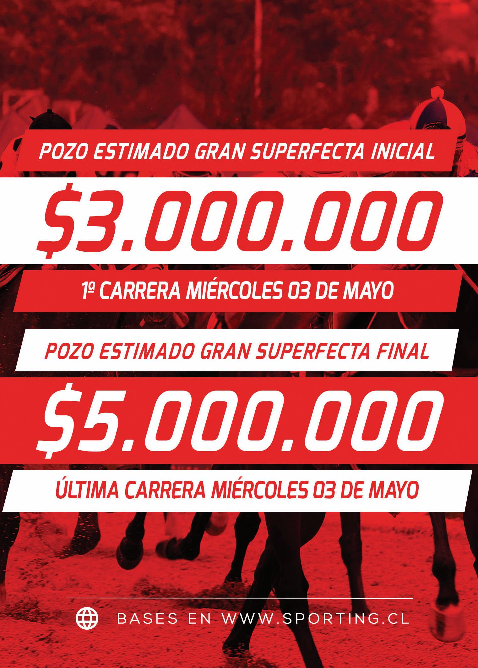 TOPGAIN1000I.Villagran1.03.6312.43 2 Años PRINCES AMINA1000F.Olivares1.03.8212.33 2 Años ACACIAFLOWER1000F.Olivares1.04.6311.62 2 Años ENERGIAGITANA1000T.Seith1.05.0311.91 2 Años MAMMATINA1000I.Villagran1.05.1512.36 2 Años CHAO NENA800Aprendiz0.50.1511.87 ROAD KING800F.Olivares0.50.3212.29 CONSTANCIO800J.Eyzaguirre0.50.5711.32 MYGRAN TOMMY800J.Cueto0.51.4511.06 GRAN CONSERVADOR800Aprendiz0.52.6012.25 2 Años ESPERPANTO800Aprendiz0.52.7912.24 2 Años SUPRAEDGE800J.Baeza0.53.0712.80 DICTATORIAL700S.Marin0.43.0011.21 Mandil PRINCE OF DUBAI600C.Poblete0.35.362 Años ALHAKAM600S.Gonzalez0.35.42 PAJOMA600Aprendiz0.36.162