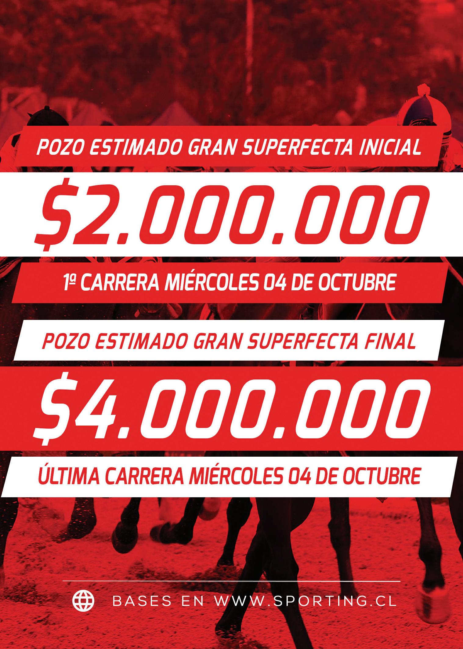 Acertar el 1er, 2do, 3er y 4to lugar de una carrera, en orden exacto, con un mínimo de cuatro ejemplares seleccionados. Valor mínimo $ 100.