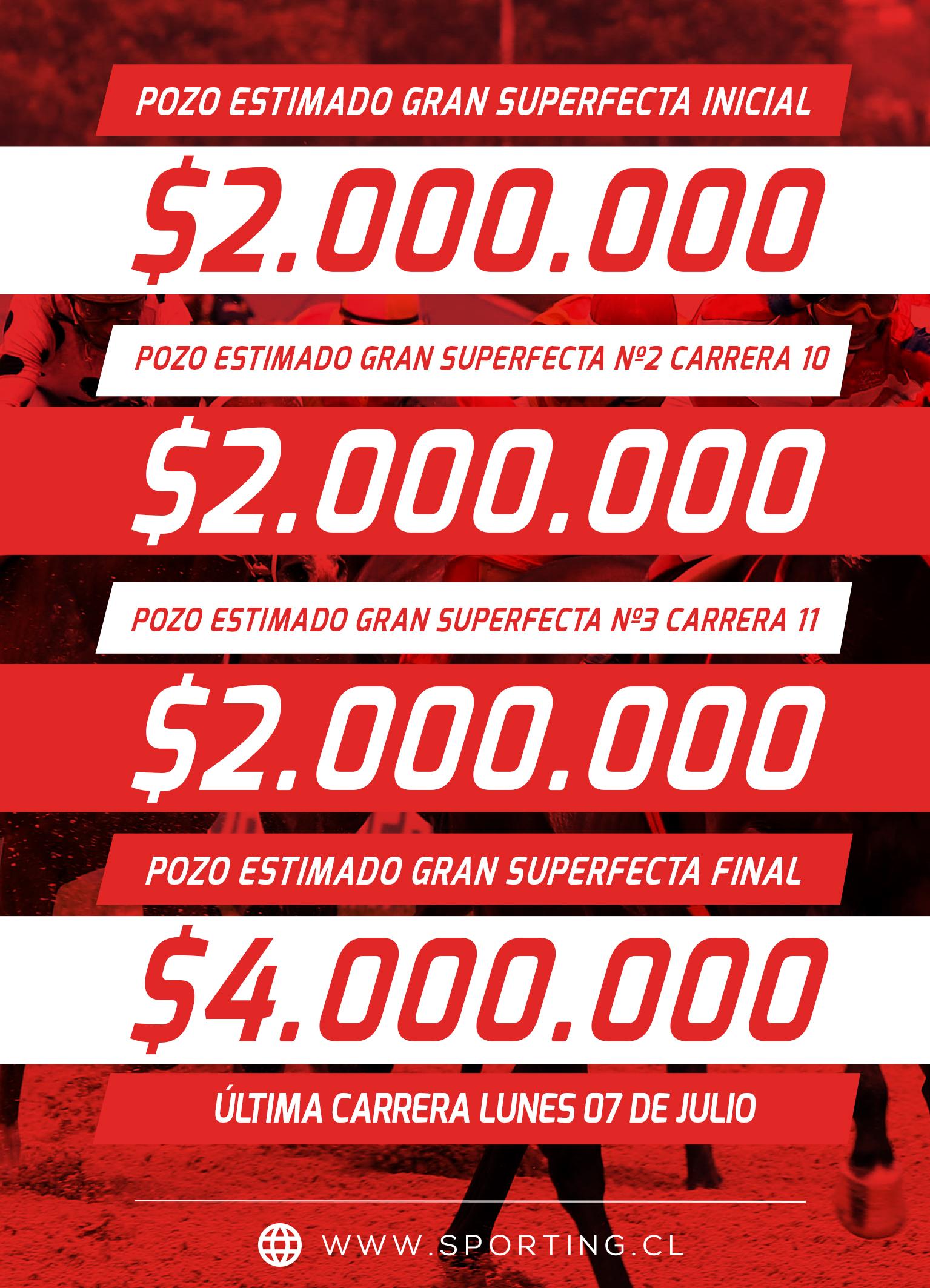 Segundo, Tercero, Exacta, Quinela, Trifecta, Gran Superfecta Final $ 200