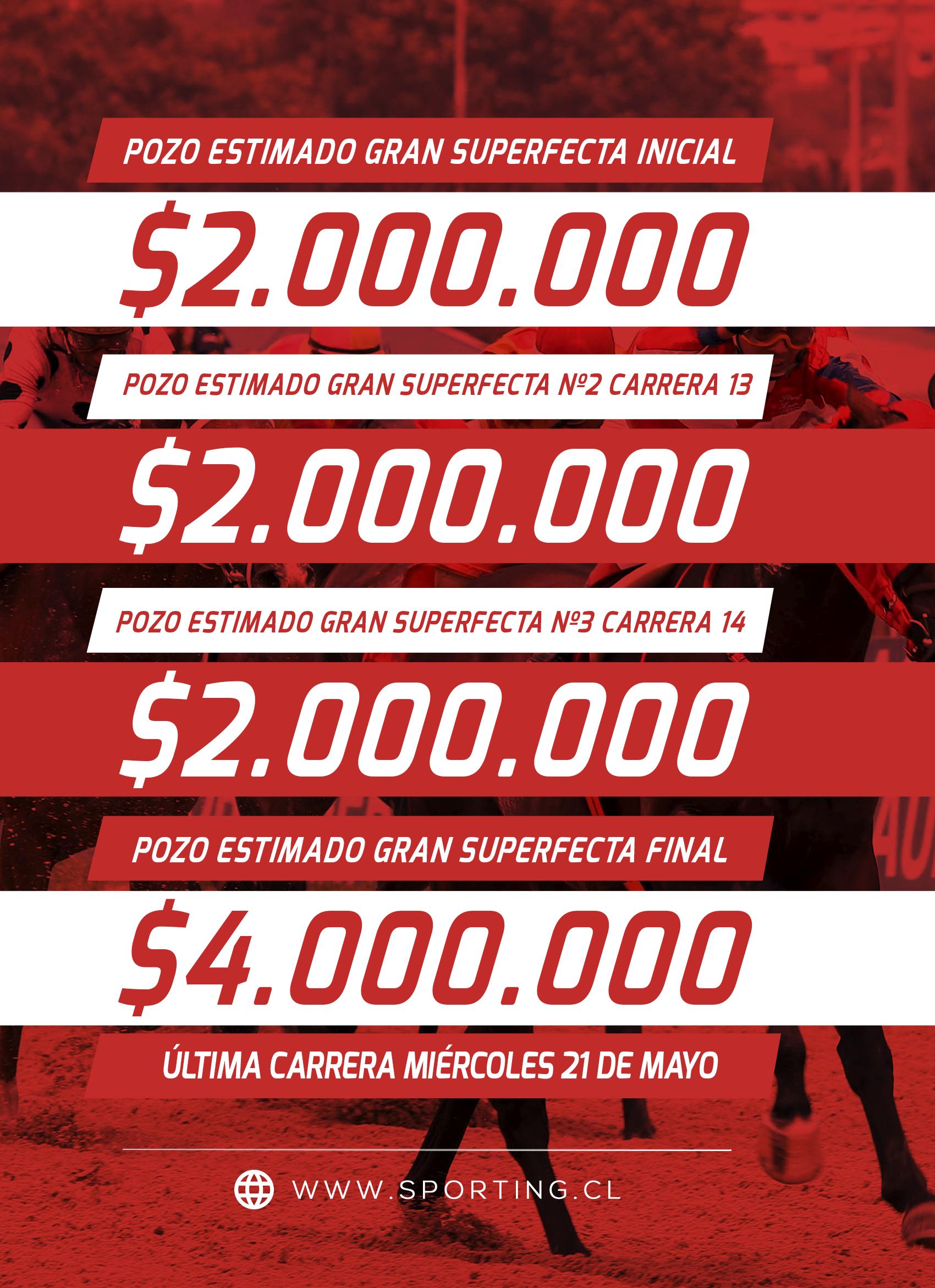 Acertar el 1er, 2do, 3er y 4to lugar de una carrera, en orden exacto, con un mínimo de cuatro ejemplares seleccionados. Valor mínimo $ 100.