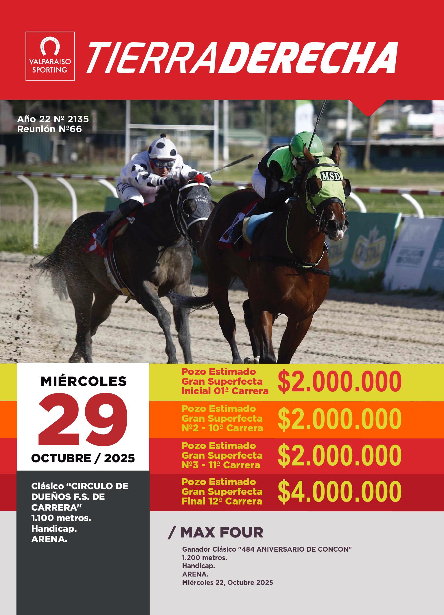 39131ELOPORTUNO448657Gerard Rodriguez3,50 40262MALDOTTI9490pcz57Simond Gonzalez14,00 39403JANSTAR5424255Carlos E. Urbina31,30 32614POGACAR114963 1/458Joaquin Herrera3,50 39415DRAKE (ARG)14724 1/456Jose Eyzaguirre5,00 40256FURIOSO NANO24564 1/255Wladimir Quinteros16,30 41307BREEZYSTAR13430655Jaime Medina6,30 40258MALAMEMORIA64837 1/456Diego Carvacho30,00 36469ÑAMANDU34457 3/456Maximiliano Salinas31,00 402310PAICAVI124488 1/458 Sebastian E. Gonzalez 5,70 393611POTRO QUERIDO84738 1/255Felipe Tapia27,80 402612IRISH BAND144901155Israel Villagran42,60 402313MUYMATON1050911 3/458Sebastian Marin32,20 413014TROIS PLUMES74402255Rodolfo Fuenzalida72,80