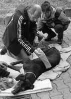 Die 7jährige Dogge lag nur noch flach.Kein Schmeicheln und Locken half,sie stand nicht mehr auf.Am ersten Samstag im November in einem engen Transportkäfig ins Tierheim gekommen,war sie am Ende ihrer Kräfte. Sie lebte bislang bei einem älteren Ehepaar, das sie seit einem halben Jahr nicht mehr spazieren führen konnte,in einer kleinen Wohnung.Erschöpfung,Heimweh, Transportstreß hatten die wunderschöne Dogge so entkräftet, dass sie am Aufgeben war.Uns blieb nur eins: ganz unverfroren klingelten wir die Mitarbeiter von Dog’s Reha,der Praxis für Physiotherapie in Asperg,mit unserem Hilferuf heraus.Sie erschienen prompt zu zweit und arbeiteten vier Stunden lang an Muskeln,Nerven und Gelenken.Das Unglaubliche geschah: Alma stand auf und tat die ersten, noch unsicheren Schritte. Sonntags wurde die Behandlung wiederholt, und jetzt geht es Alma von Tag zu Tag besser.Wir haben sogar schon einen Platz für sie gefunden, sobald sie sich vollends erholt hat: ein Doggenliebhaber mit großem Herzen für diese Hunde hat sie schon besucht und zugesagt,sie so rasch wie möglich zu sich zu nehmen. Unser ganz großer Dank geht an den Chef von Dog’s Reha, Hernn Harald Bauer,und sein Team.Ohne deren sofortigen Einsatz wäre die Hündin möglicherweise nie mehr auf die Beine gekommen.Für uns war es wie ein Wunder.