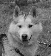 Sunny, Alaskan Malamute, geb 2006: Die mittlerweile kastrierte Hündin ist wesentlich größer als die beiden Junghunde und deutlich besser sozialisiert als diese. Sunny hat wohl anfangs menschliche Zuwendung kennen gelernt, die aber immer mehr nachgelassen haben muß und dem ständig nachkommenden