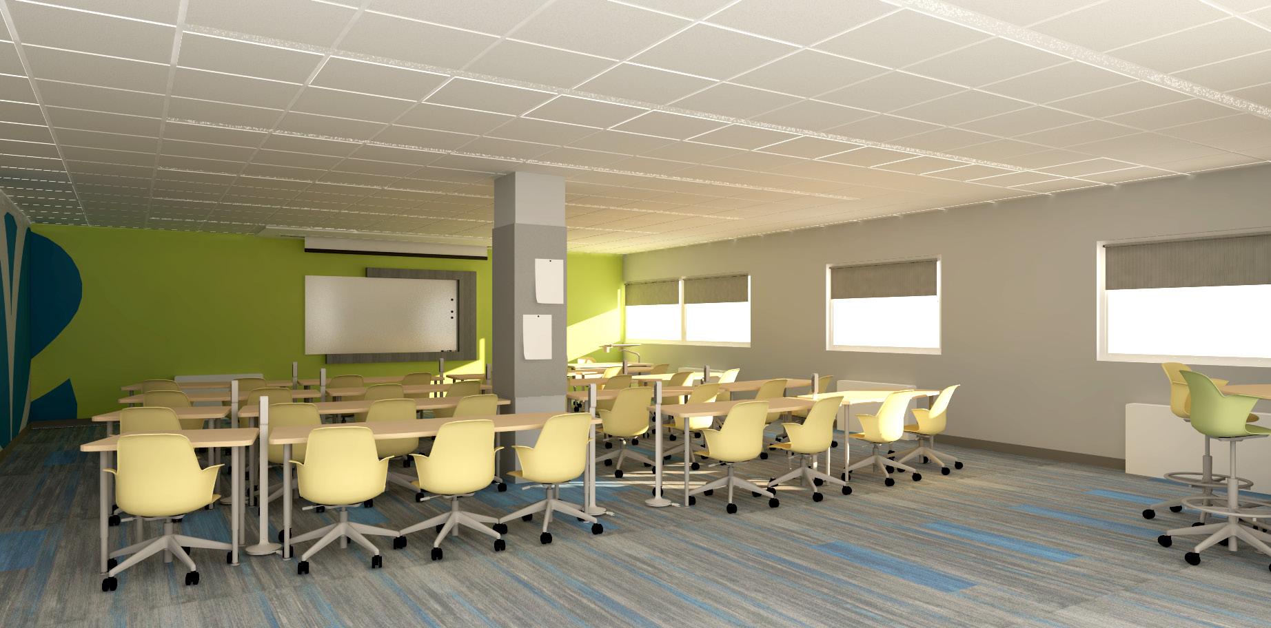 Northwoods is a web design development business located in Shorewood, WI. The employees of the company currently work in a building that was not designed for them or their needs. As a web design company their innovative minds should work in an environment that will amplify creativity and reflect it throughout. The future of work is creative - the future needs creative thinkers. There is no single way to be creative, every organization has a unique approach and needs places that drive creative performance that is specifically designed for their culture. Unlock your creative potential! In the re-design of their second floor Trainer Center the design solution was to open up the space completely to allow for more guests to attend their webinars and classes. To also create breakaway spaces for the employees and to optimize all of the space in this room. By providing a larger classroom, meeting space, and breakout areas this is now an environment that was thoughtfully designed for the client and their needs.
