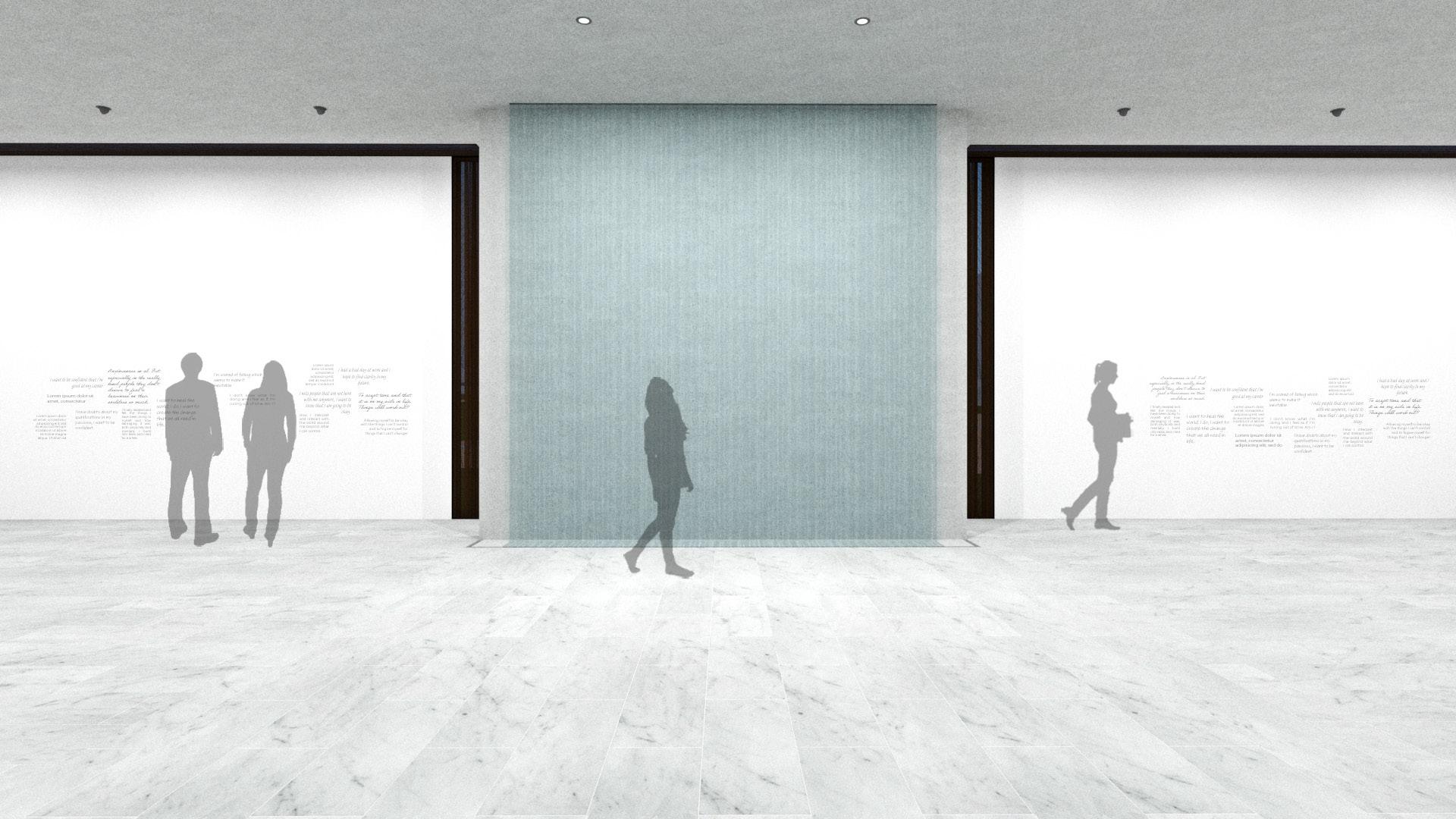On one end of the perspective wall series this pair is not quite wide enough to walk through but just wide enough to look through. The design intent was to replicate the emotion of challenge that is not resolved right away, however that does not mean it will not get easier. As one moves throughout this series it eventually does get easier and provides more clarity to the user experience. The impact of challenge and then relief is a feeling of personal growth.