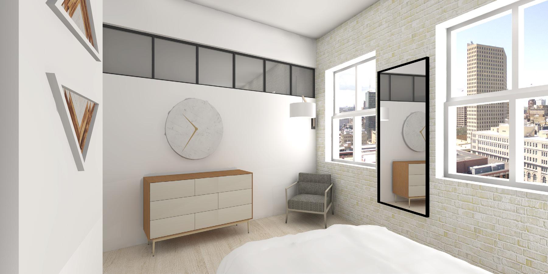 Located on Water Street in Milwaukee, WI. Gallun Tannery loft unit 404, a loft designed for a writer, a busy writer that spends most of his time in his loft doing what he does best writing. He escapes every so often to get some relief. The study is the focal point of this space, it is where the writer will spend most of his late afternoons into the long hours of the night writing his passions in an inspiring space. The study is a subtly smaller space, yet it is open and inviting, making it easier to spend a high number of hours working here. It is secluded from the rest of the loft to ensure that the writer gets up, moves around, and gets away from things from time to time. The concept in this living space for this dedicated writer is that of an open concept to provide for the optimal thinking space. He works long hard hours overflowing with ideas his living is a space where he can be for the duration of his working hours. In these open space’s light flows in for much of the day to create a stress-free thinking space for productivity.