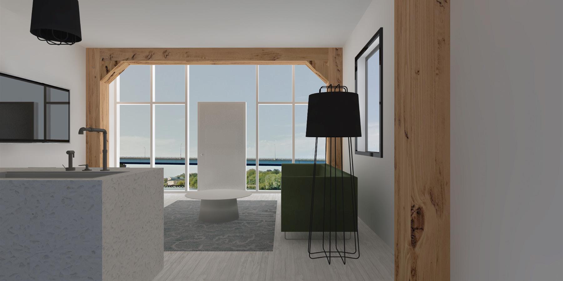 Signs of rich history all around in the city of Appleton, WI from past to present generations the history of the state and city stands. Represented throughout its industrial architectural buildings this historical site serves both as a residence for one of Wisconsin’s own as well as an inviting experiential stay for visitors. The design process began with a detailed study into the history and surrounding buildings, investigating its atmosphere. What manifested were these heritage beam structures, which created an interesting design challenge that added so much character to both spaces. These interior spaces have been designed for the comfort of the dam keeper and for the experience of the visitor(s). With such a strong passion for the state, city, and local dam living in a place where a lot of time is spent can be enjoyable. While the city and surrounding areas are the main attraction for visiting the space in which visitors stay reflects the same energy from the outside in. This cozy dual upgrade will be something all can enjoy.