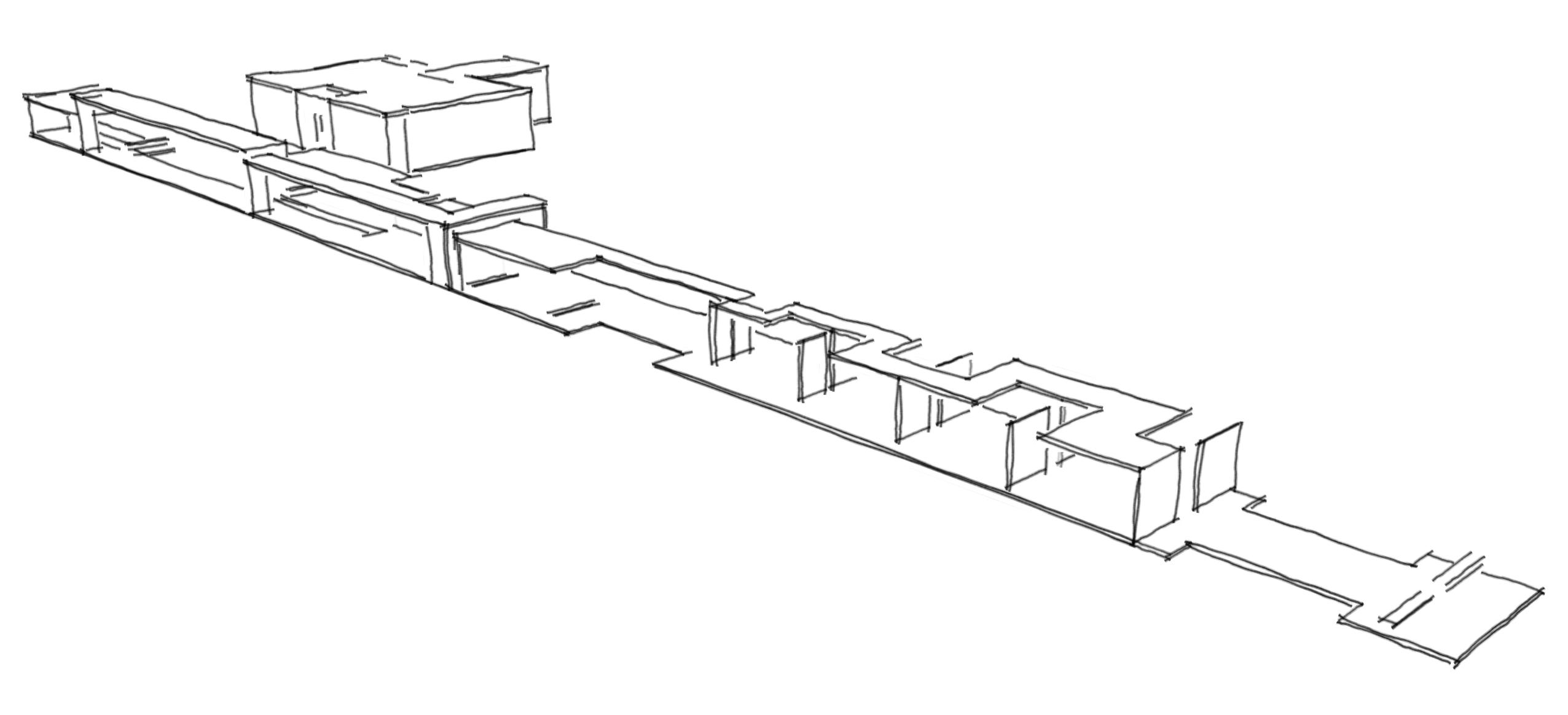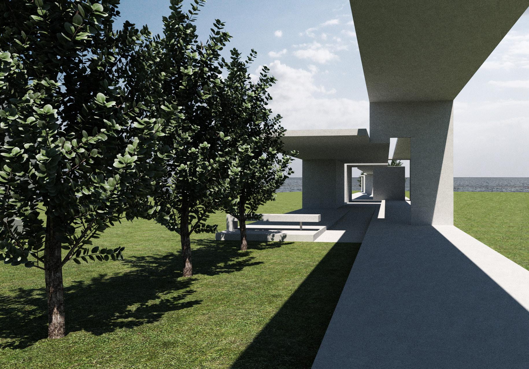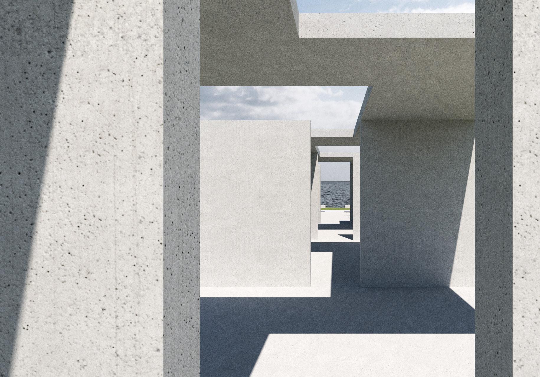 This experiential architectural structure spans the length of 10,375 SQ. FT. Throughout a mixture of moments in this self-curated user experience every point along the way represents something different. There are moments of closure and moments of relief as well as a combination of both and everything else in between. This structure was designed to stretch almost the entire length of the site in which it resides. Located right next to the interior building the architectural structure works alongside it in harmony through the design concept. Having a different experience at every angle one is welcome to choose however they desire to enjoy this element. One can even come back time after time and have a unique sense of something new. Feeling free from concern during reflection the design is meant to stimulate emotion through the process in which one prepares to heal. There is a variation of heights, placement of walls, seating throughout, and nature fully surrounding. A meaningful experience awaits, and healing begins now.