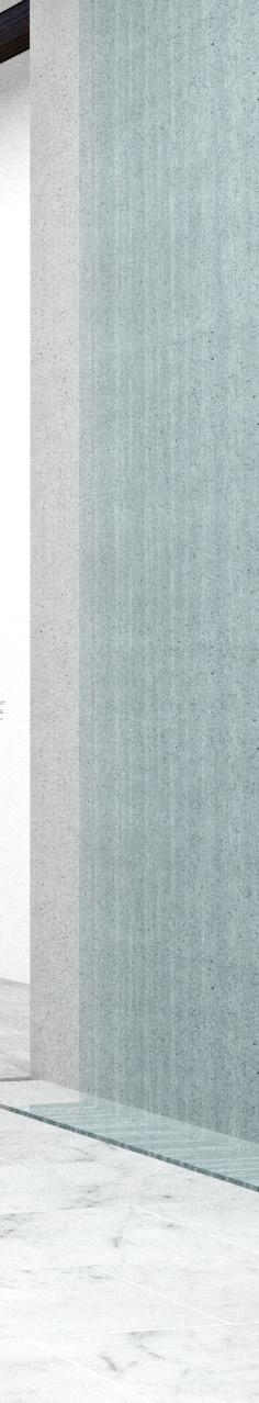 A blank canvas for the partaking in this healing experience of personal vulnerability through expression and thought. At first encounter the user in this space is greeted with a soothing floor to ceiling water wall feature surrounded by blank white walls such as this one pictured above. Blank, just before many people come to leave their mark. This space is not only designed for a self-curated experience, but it is also designed to be a collective experience by housing group meetings and events. There are chairs located in storage as well as restrooms in the back for all visitors. With the user always in mind the selection of materials was carefully chosen through experimentation and research. To achieve the design concept through detailing the relationships between interior design, architecture, and materiality had to feel unified. It is that of a clean palette not to take over the experience that people will have here but to emulate that experience and truly provide for an enhanced quality of life.