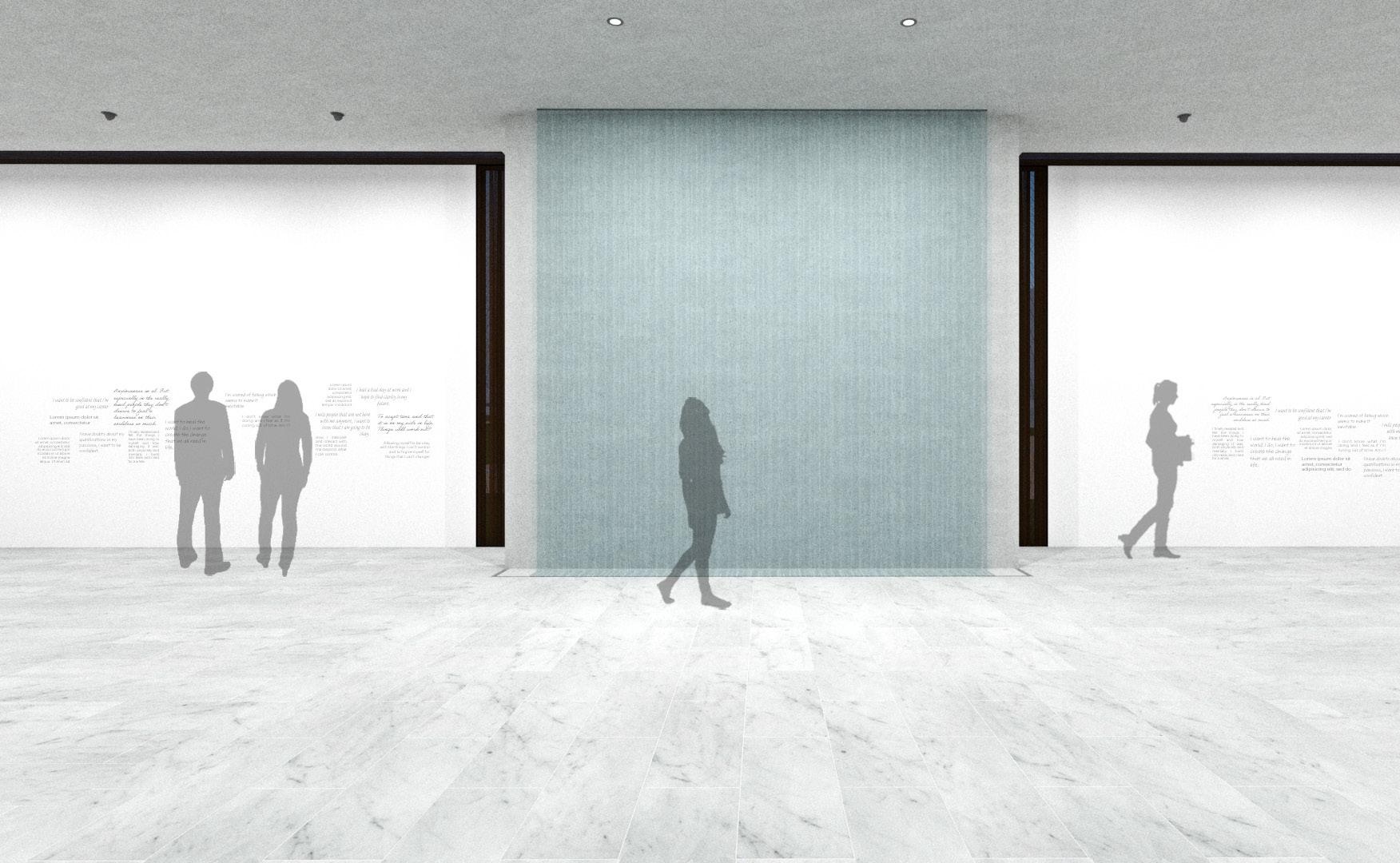 On one end of the perspective wall series this pair is not quite wide enough to walk through but just wide enough to look through. The design intent was to replicate the emotion of challenge that is not resolved right away, however that does not mean it will not get easier. As one moves throughout this series it eventually does get easier and provides more clarity to the user experience. The impact of challenge and then relief is a feeling of personal growth.