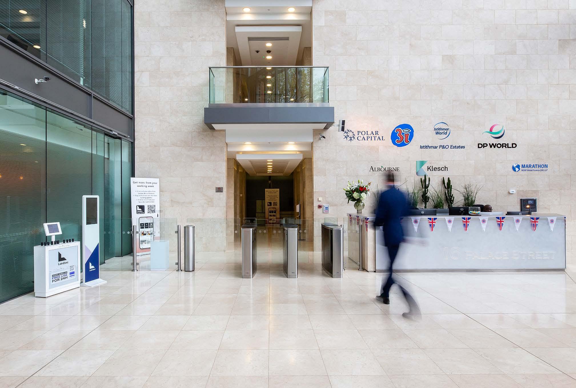 We ask that visitors are pre-booked via our visitor management system Bluepoint. This allows us to provide a seamless and professional service for your visitors and a safe experience for all by maintaining an accurate level of occupancy. Please contact Reception@16palacestreet.co.uk for access to the system.