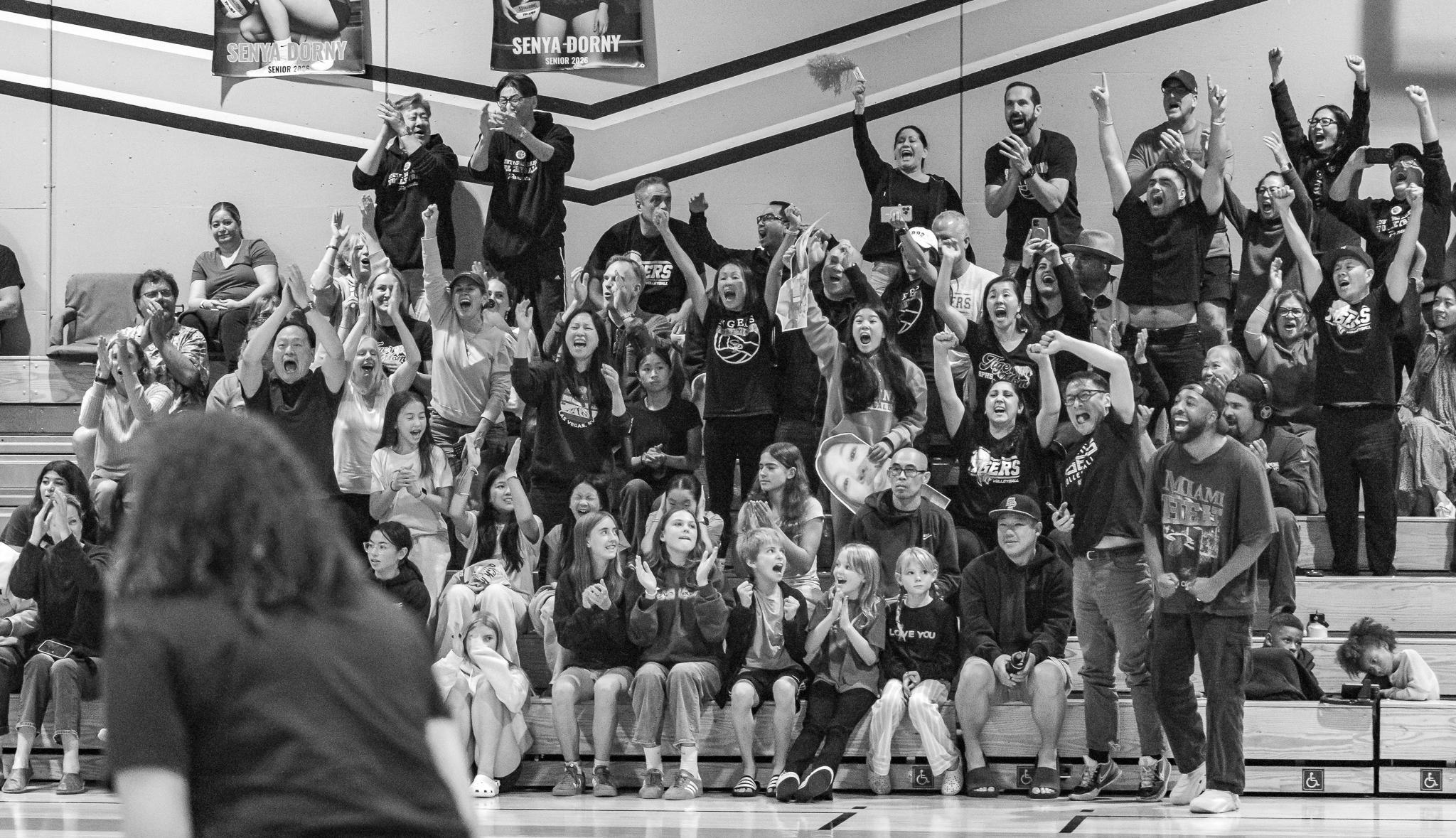 SPHS Parents cheer after Varsity Girls Volleyball scores a point.