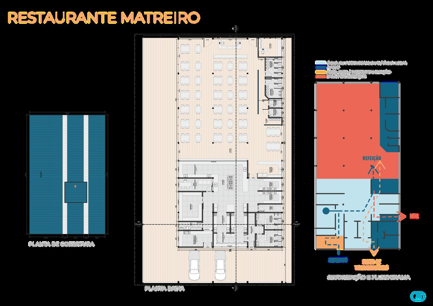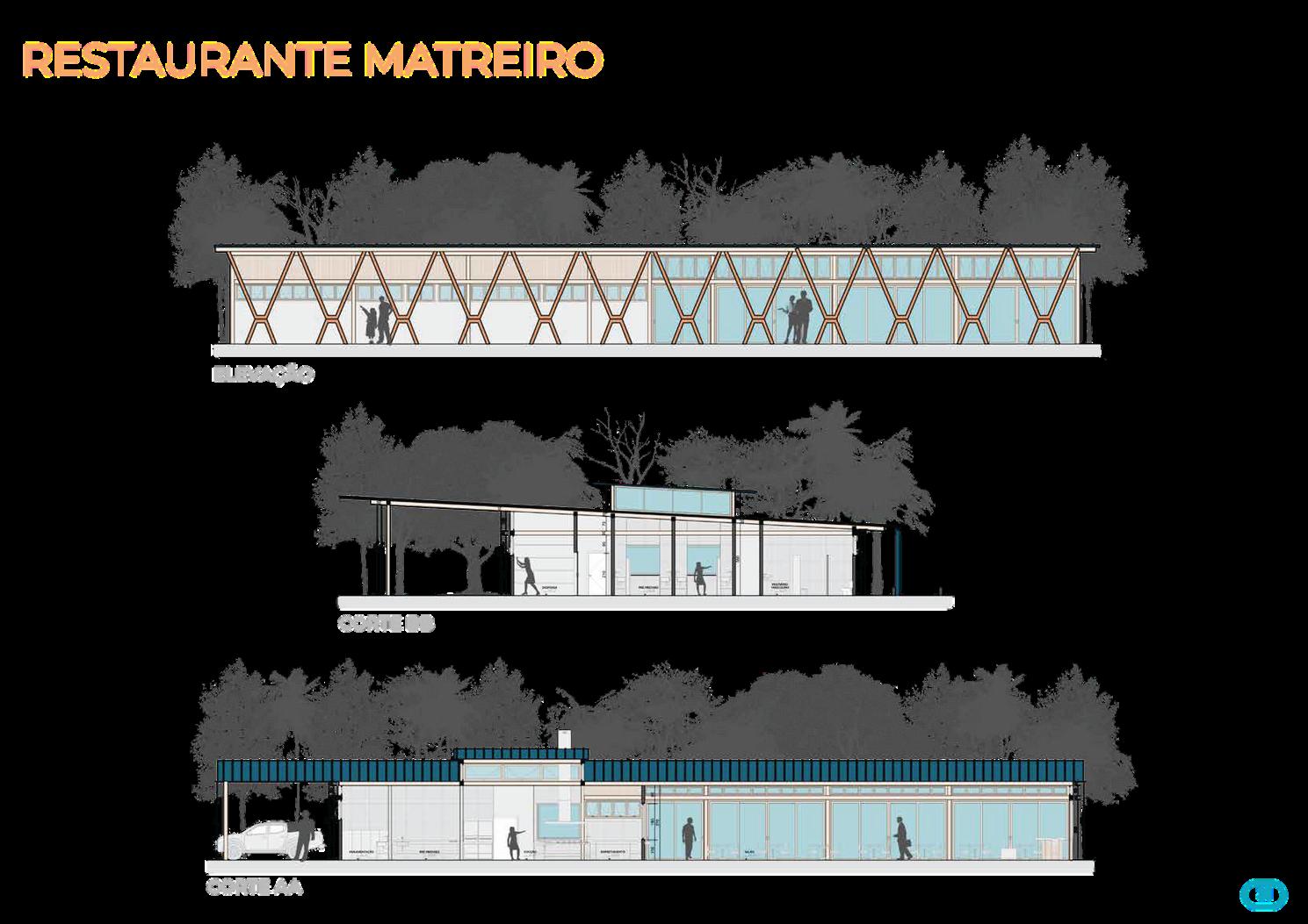 Com um programa de necessidades que exigia uma indústria de pescados e um restaurante, o Matreiro vai além promovendo atividades educacionais, áreas de lazer e permanência atrelados a muito contato com a natureza e as relações ambientais. O conjunto conta com um centro educacional, indústria de subprodutos de pescado, bar anexo ao restaurante, pedalinho, playground, trilhas, aquárionostanquesdeprodução,miranteselagos.