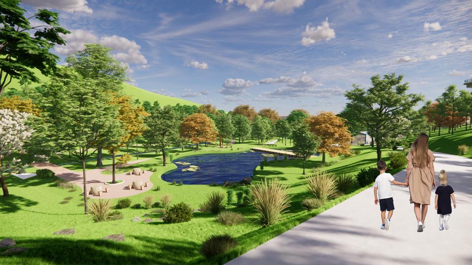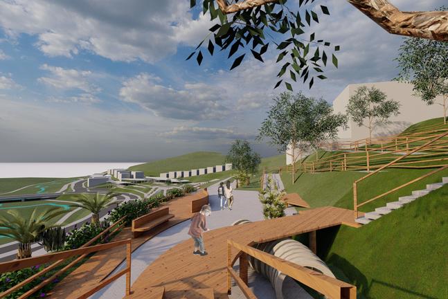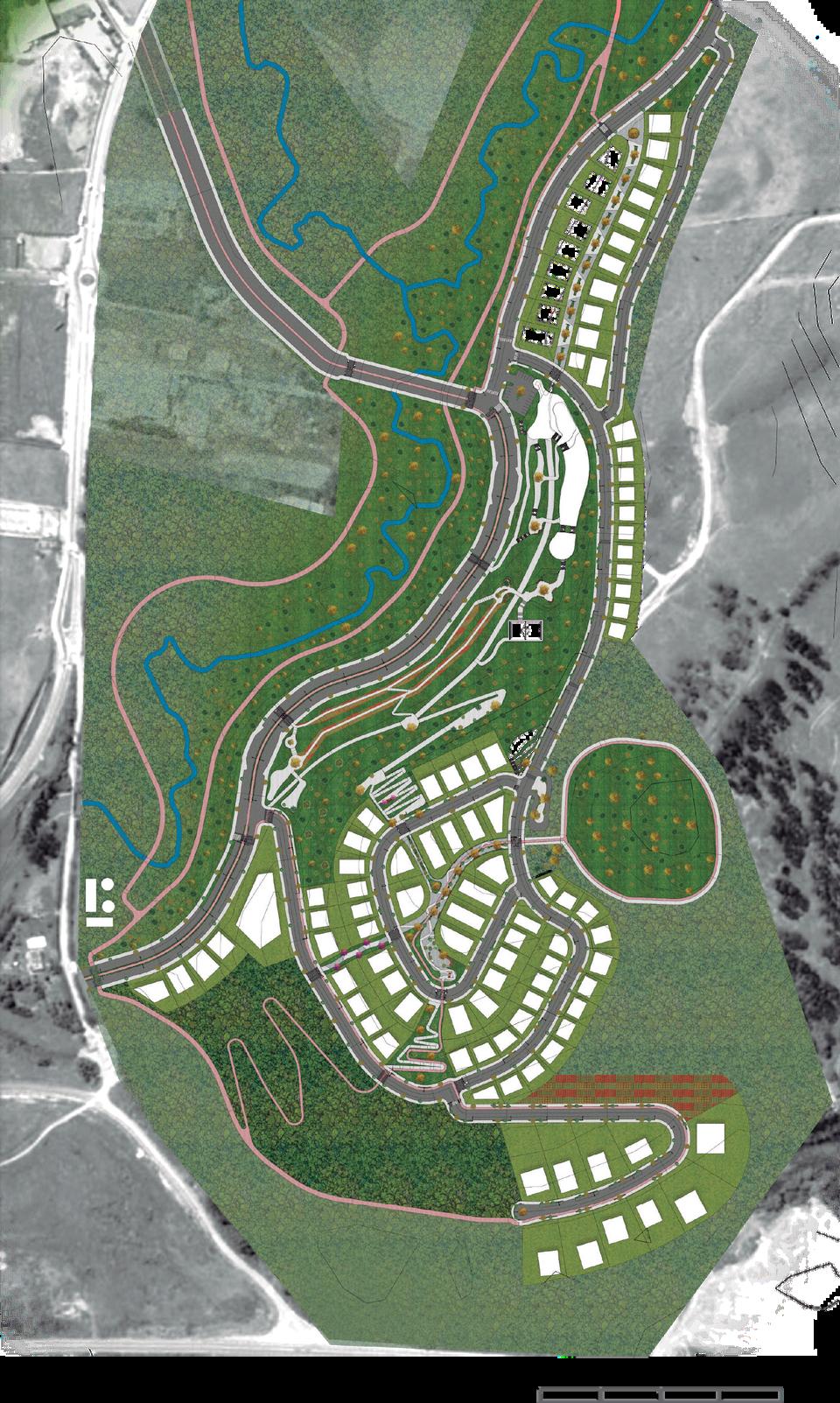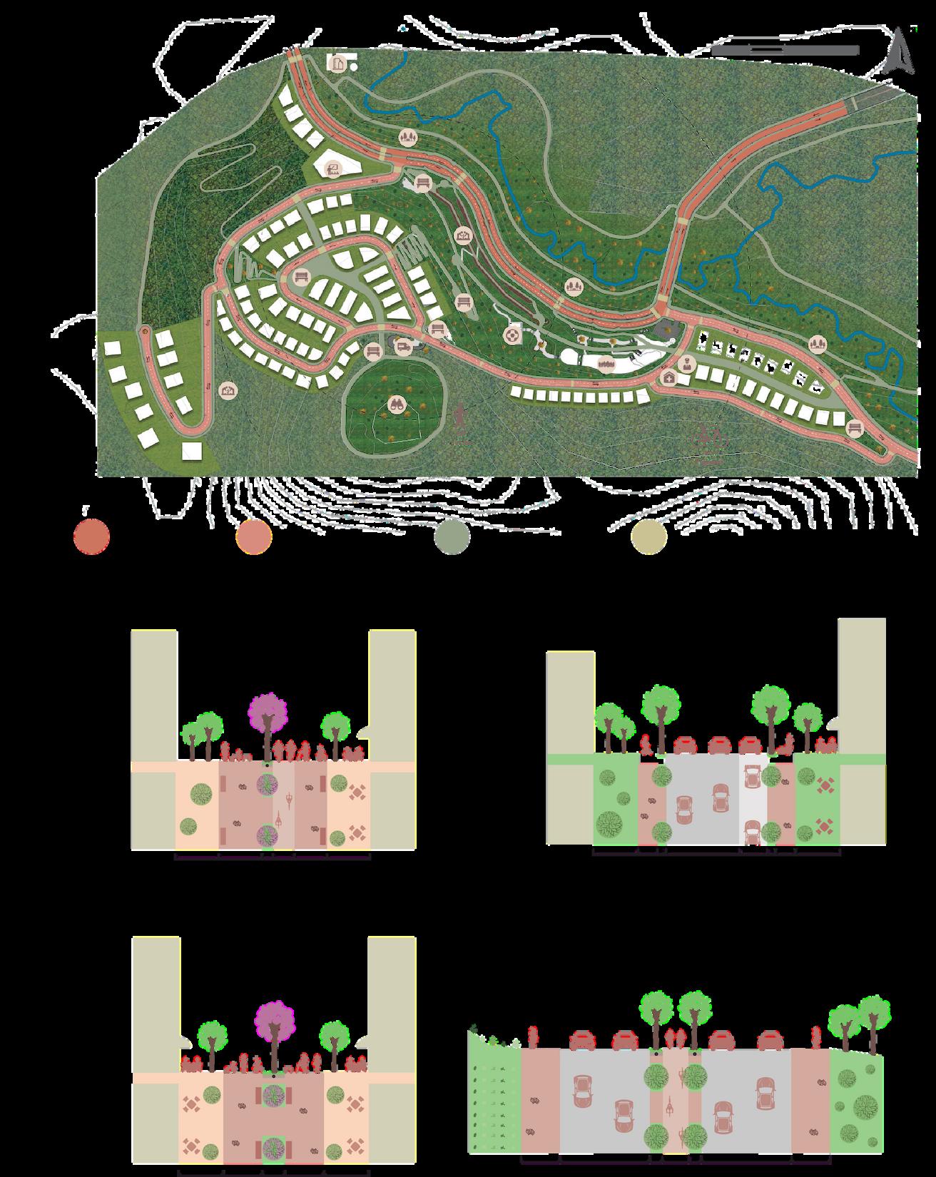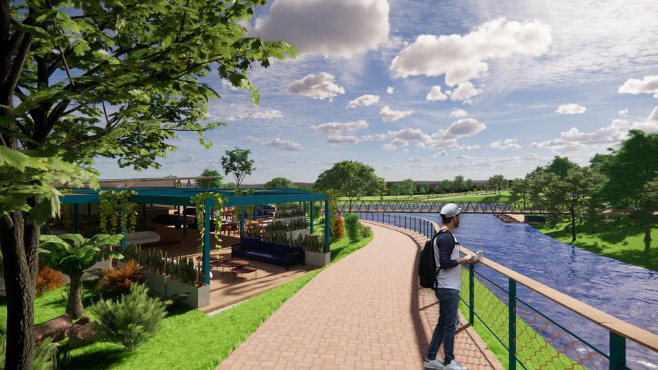 Em relação a infraestrutura, é proposto um parque linear no entorno do rio Turvo-Sujo, uma grande horta comunitária e centro comunitárioaoladodaviaprincipal,praças,miranteseequipamentos urbanosdelazer.