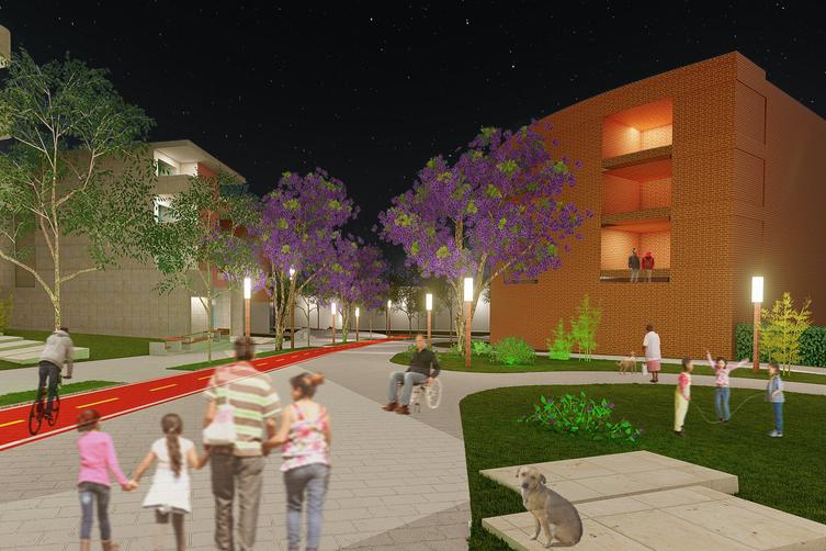 Localizado em Viçosa-MG no distrito de São José do Triunfo, o bairro aHorta veio para dialogar com o mesmo e agregar no conceito urbanoecomunitáriodaregião.Comesseintuito,oprojetocontacom uma grande via coletora que conecta o distrito à rodovia, ciclovias e caminhos de pedestres também conectam os dois bairros promovendomaiorcirculaçãoediálogoentreosmoradores