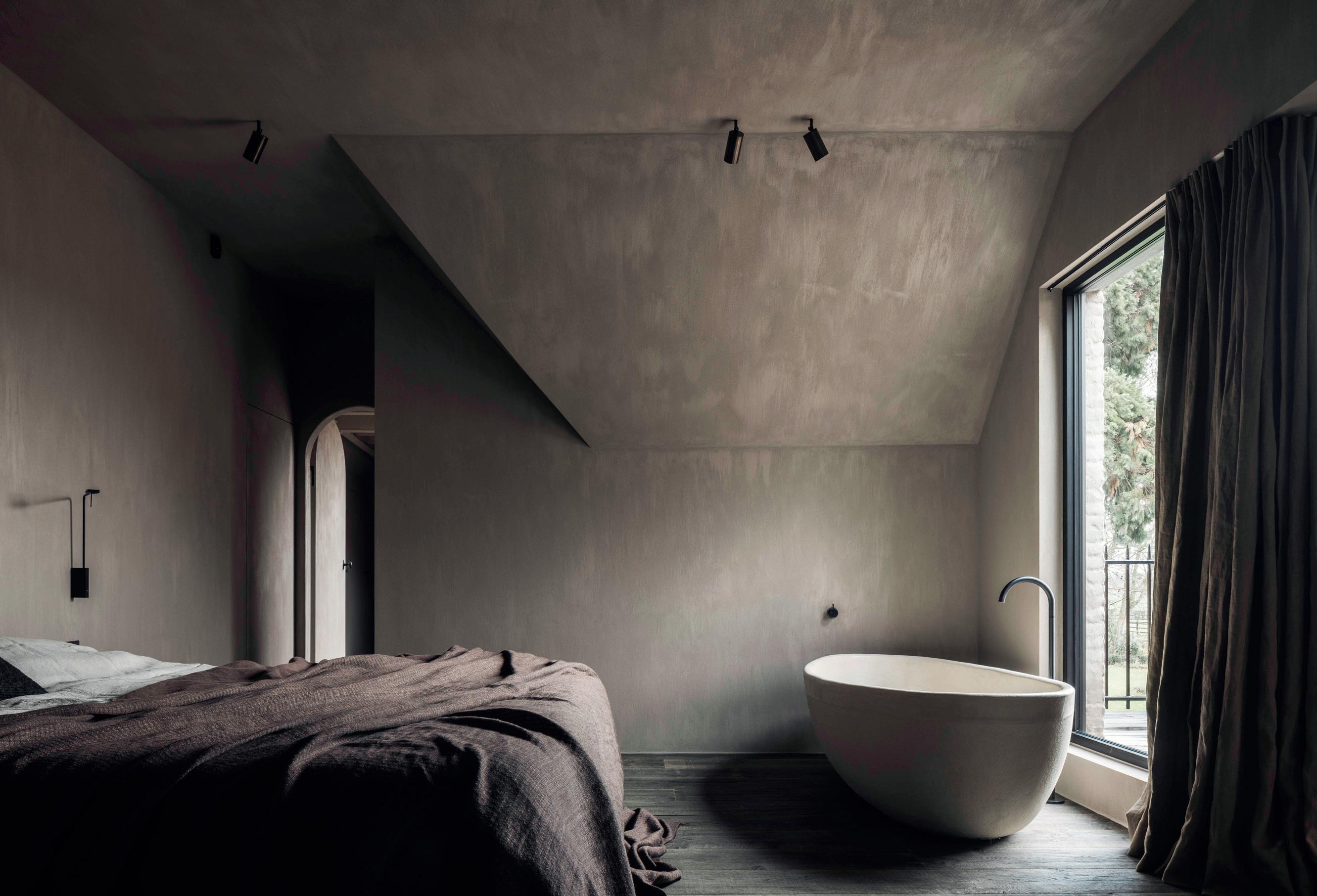 ‘Ook de materialisatie is belangrijk’, benadrukt Lenaerts. ‘Als de klanten alles wit en klinisch willen, haken we af. Als ze alleen keramische tegels willen en alles vlekbestendig moet zijn, zijn we niet de juiste partner. Bij ons komen vaak schildertechnieken op de muren, we gebruiken natuursteen, linnen, enzovoort.’
