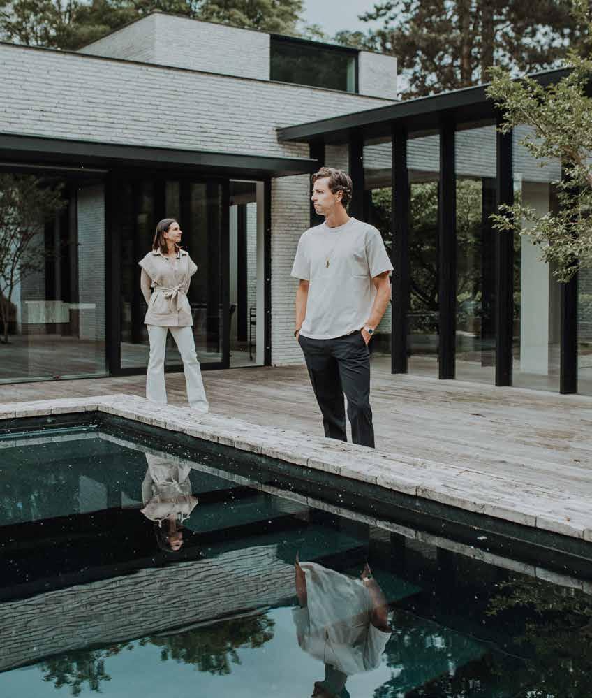 Toen ze de zaak startten, hadden ze geen strategisch plan, maar ergens leefde de droom om starchitects te worden. Na hun studies had Julie stagegelopen bij Conix in Wilrijk – intussen Conix RDBM. ‘Ik had dat eerst op Ibiza gedaan’, vertelt Mathieu. ‘Daar zag ik niet de meest technische aspecten van de job, maar het gaf een zekere visie op hoe je voor particulieren residentiële villa’s ontwerpt. Vervolgens zag ik bij Glenn Sestig en z’n luxe-interieurs een andere manier van ontwerp en materialisatie. Dat was een mooie combinatie. Voor mij was het altijd duidelijk dat we geen publieke gebouwen zouden doen.’