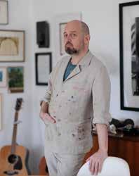 Quax-oprichter Alex Ryndziewicz is apetrots en bruist van de energie. Hij wijst naar een werk van de Duitse kunstenaar Robert Steng dat hij onlangs kocht. Het bestaat uit vlakke planken, maar heeft een driedimensionale look. ‘Dat zit ook in onze filosofie: met basic materialen iets fantastisch creëren’, zegt hij, en toont ook Tomorrow Man Made by the Sea, een variatie op de sculptuur van Catherine François die op het strand van Knokke-Heist staat. ‘Powerbeeld, hé.’