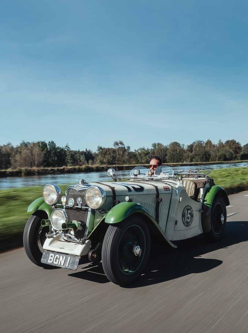 ‘Minshall was niet alleen een avonturier en spion, maar ook een fervent autocoureur. In 1934 nam hij deel aan de Rally van Monte Carlo met een Singer viercilinder’, vertelt Kistemaker. ‘Nog datzelfde jaar kocht hij de zescilinder-versie, deels uit frustratie, omdat hij niet was opgenomen in het Singer-fabrieksteam. Met deze auto wilde hij het fabrieksteam kloppen, wat hem wonderbaarlijk genoeg ook lukte. In 1934 reed hij er Luik-Rome-Luik mee en in 1935 opnieuw de Rally van Monte Carlo. Voor die laatste race werd in die tijd telkens een andere startplek bepaald. Dat kon eender waar zijn: Athene, Lissabon, Sofia, Amsterdam, Oslo, ... Deze editie startte in Umeå, Noord-Zweden. Eerst moest hij dus met het autootje vanuit Londen naar daar, om vervolgens in vier dagen non-stop, zonder slapen, naar Monaco te rijden. Hij won in zijn klasse en werd veertiende overall – op 150 deelnemers. Meteen