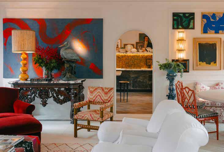 Garnier is een meester in het ontwerpen van eclectische interieurs. ‘Het is mijn passie om verschillende elementen te laten samensmelten tot één warm geheel’, vertelt zij. ‘De combinatie van gedempte kleuren, kwaliteitsmaterialen en elegantie pep ik graag op met kunst, prachtige boeketten, warme tapijten en een gedempt kleurenpalet.’