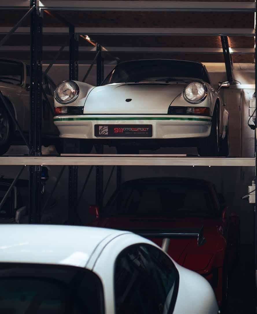 Intussen bevat zijn persoonlijke collectie alle luchtgekoelde RS-uitvoeringen: behalve de 2.7 dus ook de 3.0 RS, SC/RS, 964 RS, 964 3.8 RS en 993 RS. Telkens opnieuw zijn het de meest waardevolle varianten van de 911-reeks. ‘Van de SC/RS werden slechts 21 exemplaren gebouwd’, vertelt hij. ‘Van de 3.0 RS en de 3.8 RS zijn dat er 55. Die laatste is een uniek model. Destijds wist bijna niemand dat hij op de markt was. Je moest al connecties bij Porsche hebben om er een te bemachtigen. Ik kocht mijn exemplaar in Zwitserland met 9.000 kilometer op de teller. Nu zijn
