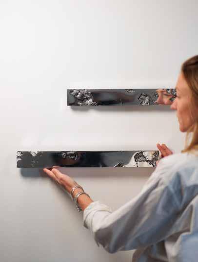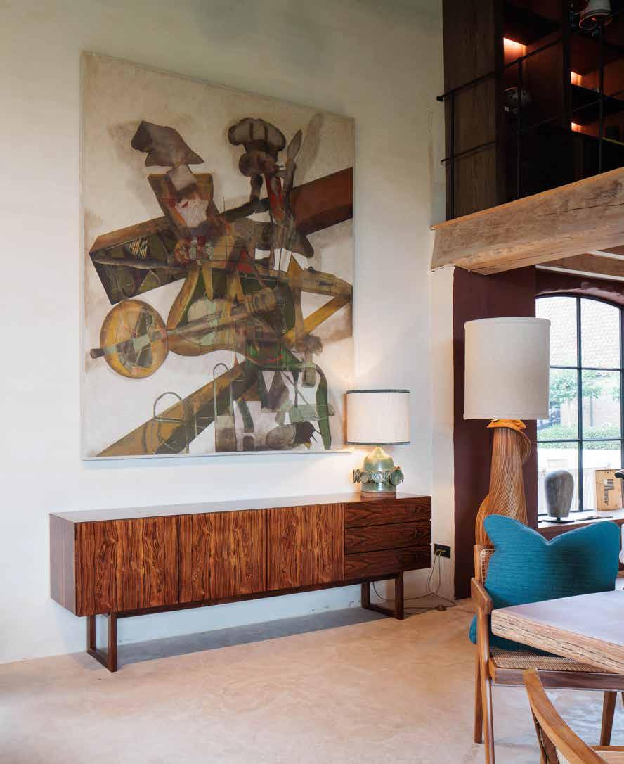 door de kunst die ze selecteert. Daarbij vermijdt ze minimalisme, waar ze weinig affiniteit mee voelt. Er zijn constant zo’n zes à zeven kunstenaars die hun werken aanbieden via een samenwerking met ML Gallery van Marie-Louise van Overdijk-Reek. Momenteel springen vooral de werken van de Spaanse kunstenaar Miguel Ybañez en de Nederlandse Arty Grimm in het oog. Hun abstracte, kleurrijke werken vormen een mooi evenwicht met de klassieke interieurs.