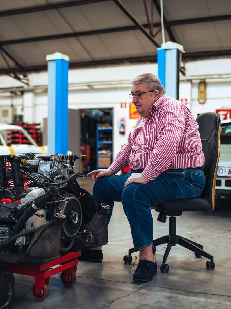 kunnen kopen met geld dat ik van mijn grootvader kreeg.’ Zijn eigen vader deelde zijn passie helaas niet. ‘Die had niets met auto’s. Hij zette gewoon zijn tuingereedschap in de Porsche! Ik werd er helemaal gek van’, vertelt hij met een grijns. ‘Uiteindelijk moest ik de wagen verkopen, maar 46 jaar later heb ik hem teruggekocht. Dat voelde als een kleine overwinning.’