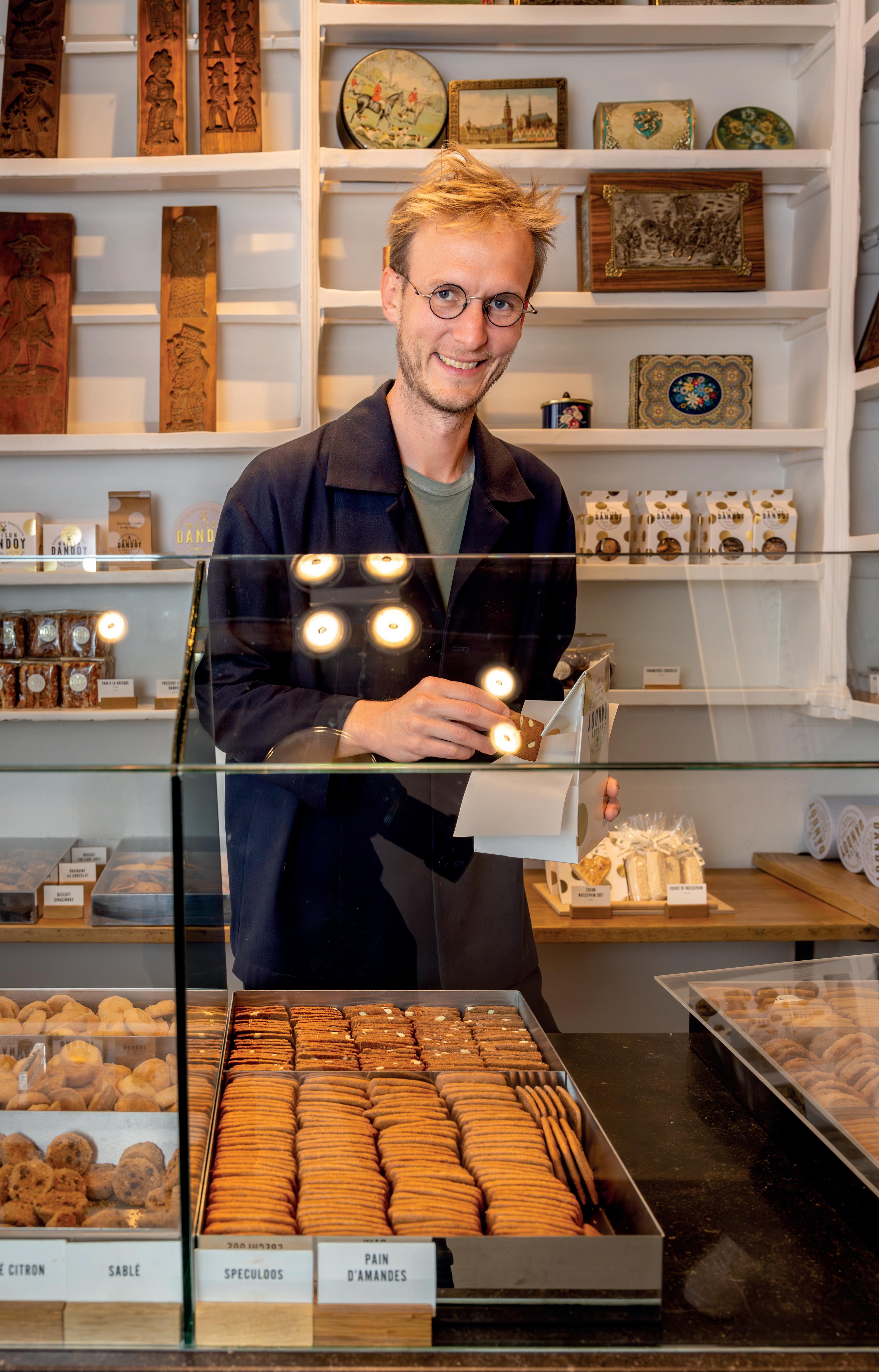 Alexandre Helson: ‘Maison Dandoy is een jaar ouder dan België: binnenkort vieren we onze tweehonderdste verjaardag. Ons bedrijf is gekend voor de traditionele producten, vooral ambachtelijk speculaas. Dat is een van onze paradepaardjes sinds Jean-Baptiste Dandoy, een ambachtelijke bakker, het bedrijf oprichtte. In de loop der jaren hebben we ons gamma uitgebreid met madeleines, biscottes sucrées, ijsjes en wafels. In ons atelier in Brussel worden de koekjes nog steeds gemaakt zoals in de 19de eeuw. De speculaas bakken we in dezelfde ouderwetse houten vormen. Alles gebeurt met de hand, van het afwegen van ingrediënten en het bakken in de oven tot het sorteren en verpakken van de koekjes. Negentig procent van onze koekjes verkopen we via eigen winkels in Brussel. We proberen het ambacht in stand te houden.’