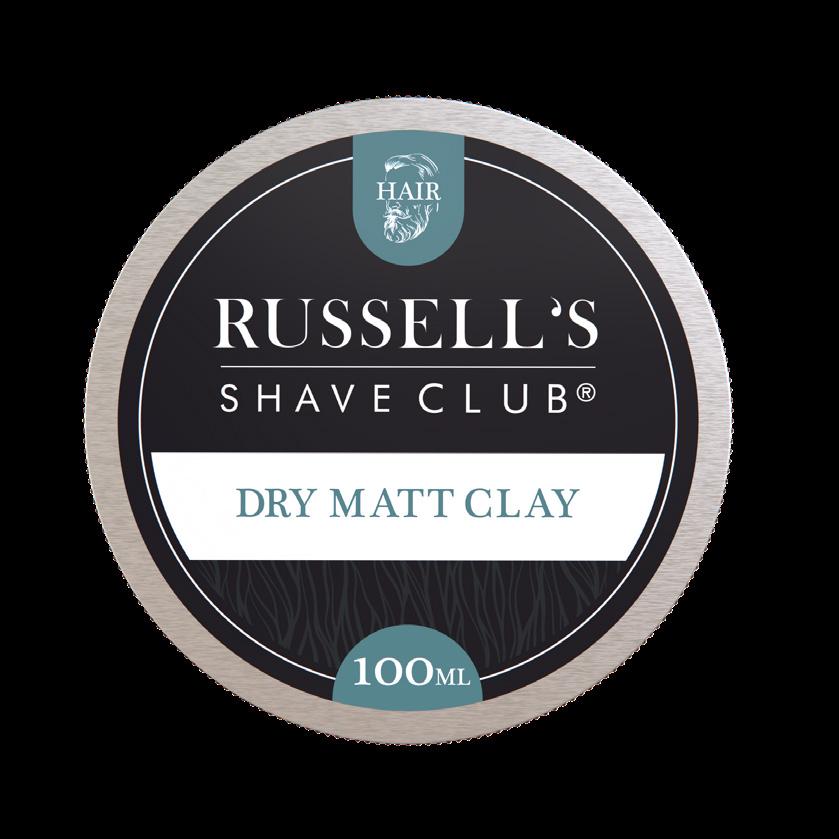 Russell’s Dry Matt Clay is perfect for any length of hair and keeps your scalp free of impurities.